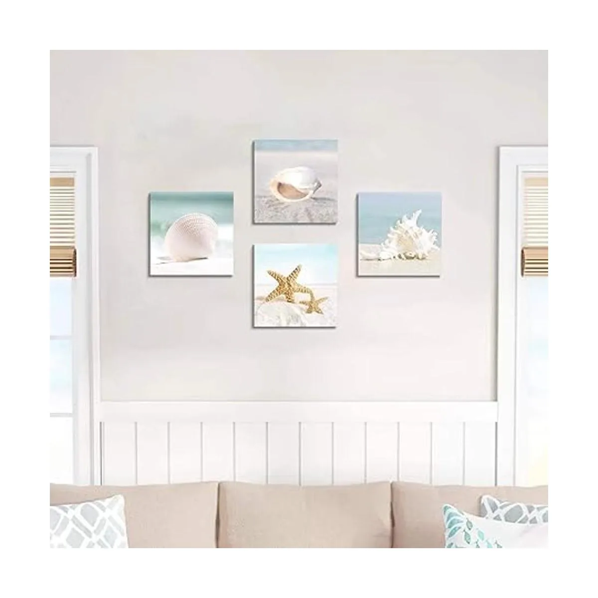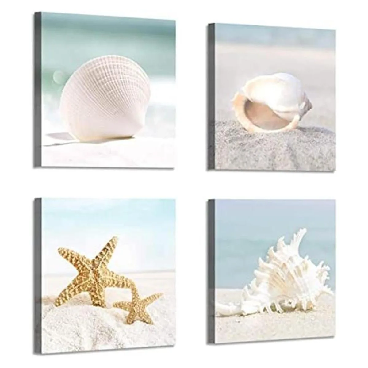 Canvas Printed Wall Art Pictures: A set includes 4 panels beach silver soft sandy decor wall art canvaseach panel size is 12×12 inches. When cleaning your seashell decor canvas wall art, simply use a light feather duster or dry cloth. Copyright licensed image with high resolution definition