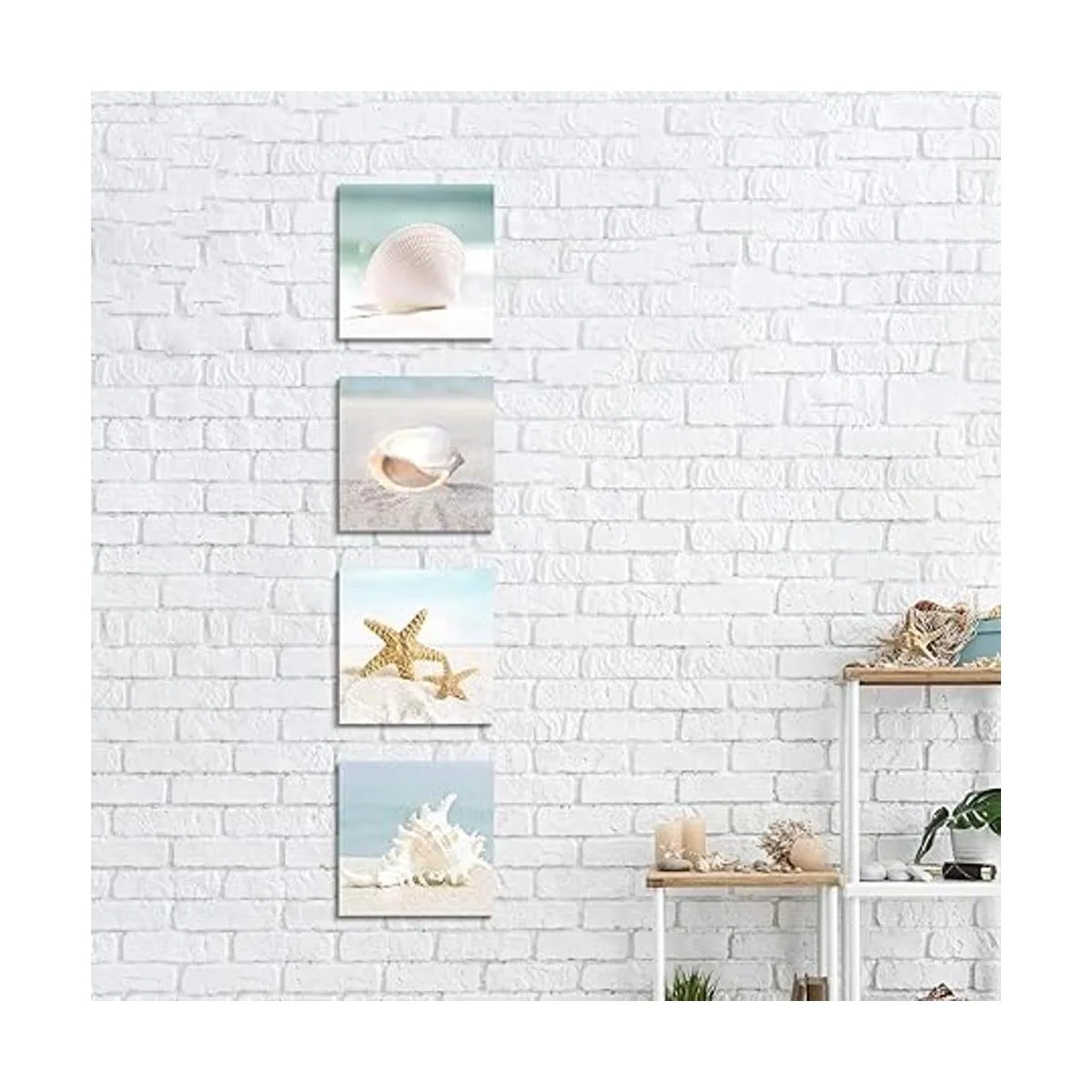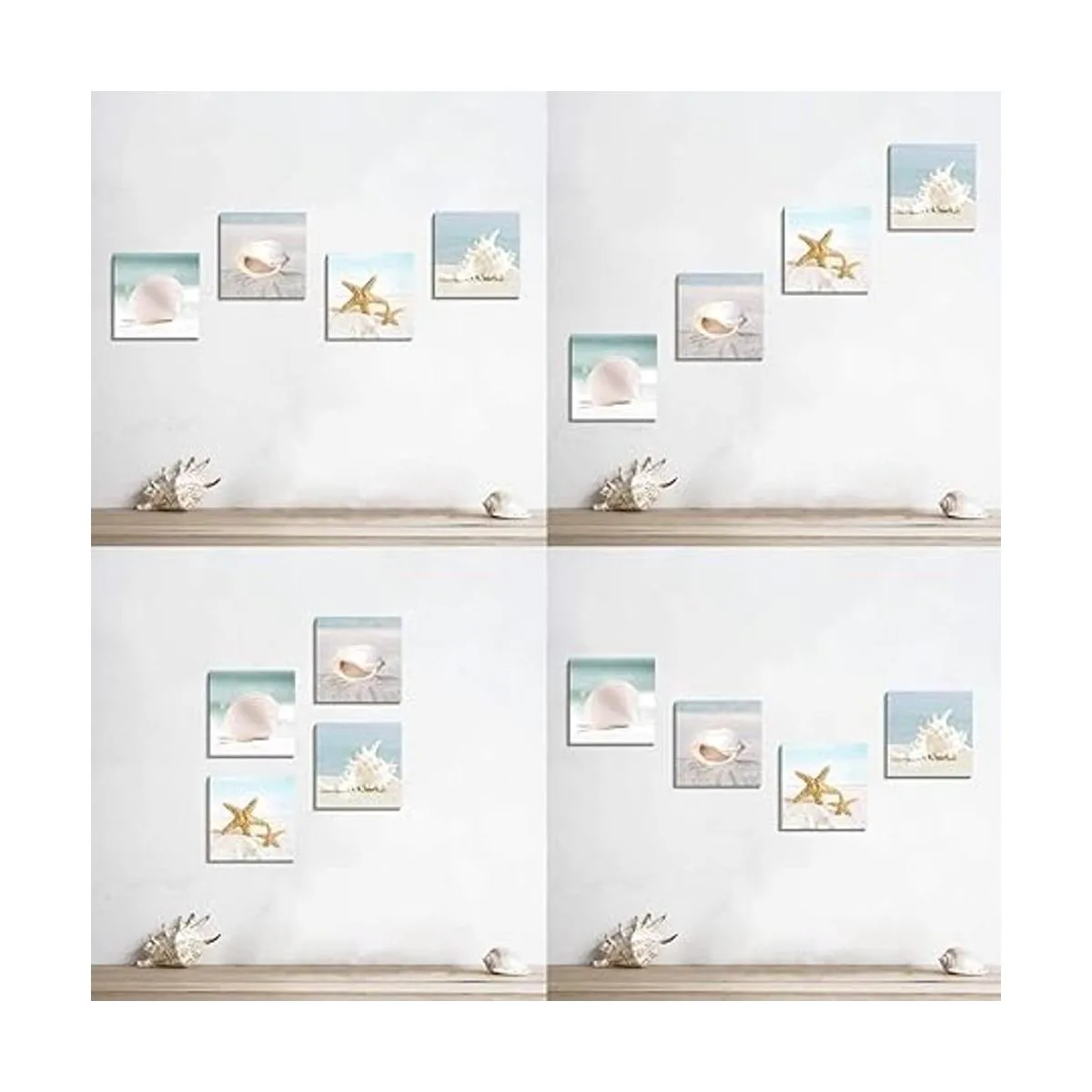 Seashells Canvas Sets Wall Decor: Includes 4 panels sand canvas art wall decor with free hanging accessories for a quick and easy hanging process that achieves the best positioning results