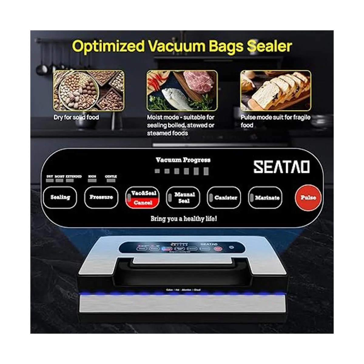 Accesorios : la máquina selladora al vacío viene con una manguera de accesorios para sellar contenedores, 2 rollos de bolsas selladoras al vacío de 11.0 in x 19.7 ft y una junta de espuma adicional. La máquina selladora al vacío Seatao VH5188 viene con una garantía de 5 años, servicio en línea las 24 horas y solución perfecta para tus problemas en 8 horas.