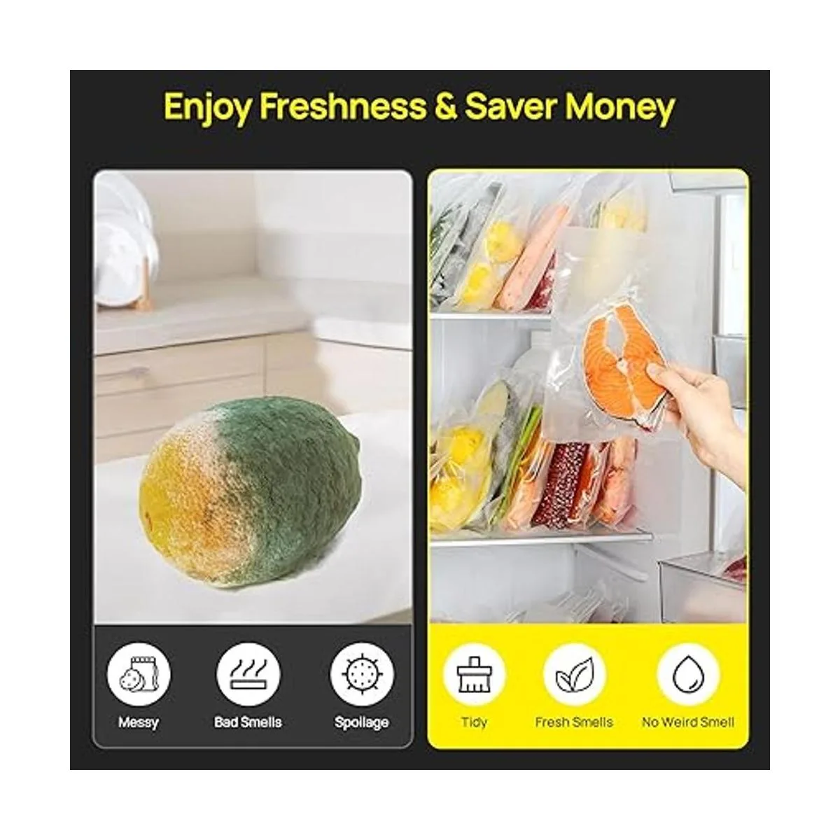 Mantiene la comida fresca y ahorra dinero: 90 Kpa de fuerte succión, mantiene la comida fresca hasta 7 veces en comparación con los métodos de almacenamiento normales. Esta máquina selladora al vacío elimina el aire de las bolsas y crea un sello hermético para bloquear la frescura y reducir los residuos para ahorrar dinero.
