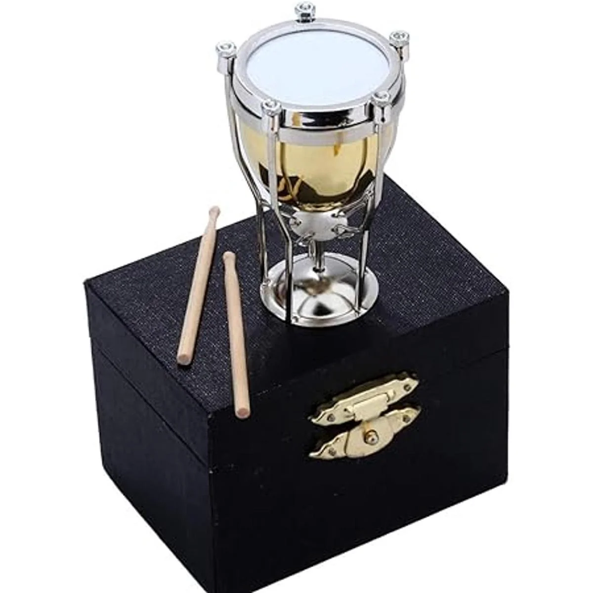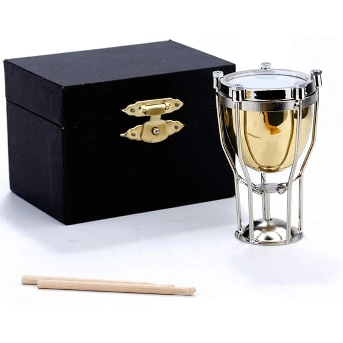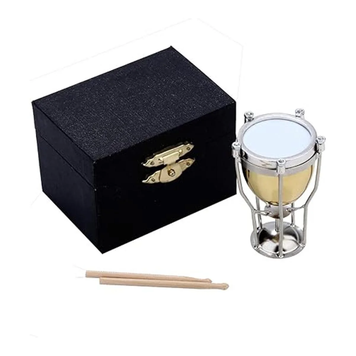 Seawoo Timpani miniatura con estuche Mini instrumento musical de percusión Mini Timpani miniatura modelo de casa de muñecas adorno de Navidad y regalo Timpani