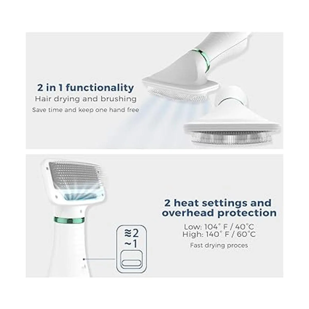 Secadora y cepillo en uno: esta secadora multifuncional 2 en 1 para mascotas es la solución para secar a tu mascota con cuidado amoroso. Después de un baño, paseo lluvioso o en un frío día de invierno, esta secadora y cepillo se pueden utilizar para proporcionar calidez y comodidad a tu perro. Con un movimiento suave, puedes cepillar y secar a tu mascota.