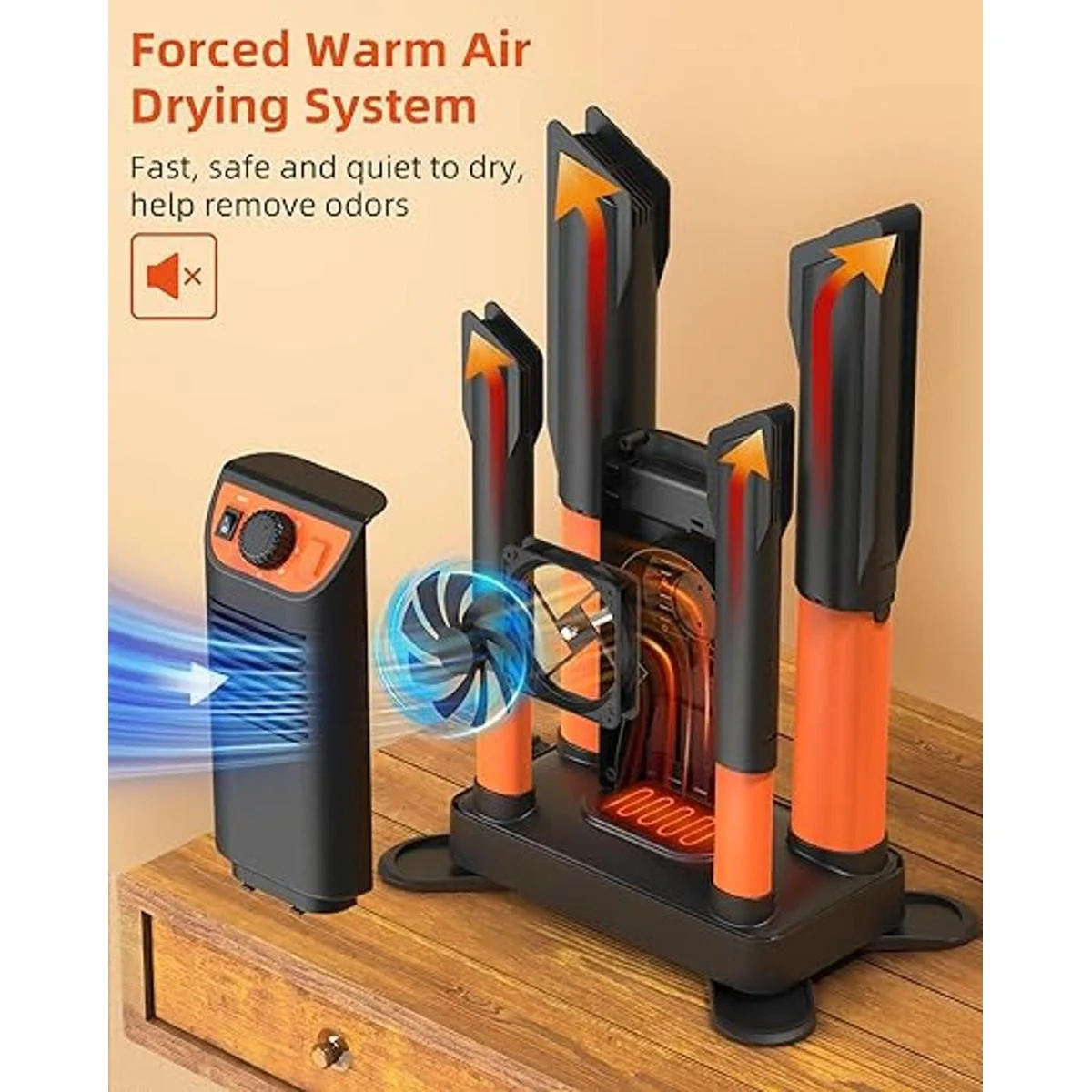 Secado rápido y seguro: el sistema de aire caliente forzado mejorado permite que la secadora de botas resistente seque la mayoría de las prendas en 60 minutos, y el aire caliente nunca causa ningún exceso de secado o encogimiento. Cero riesgo de incendio por sobrecalentamiento. Seca de forma segura botas, zapatos, guantes, cascos y otras prendas.