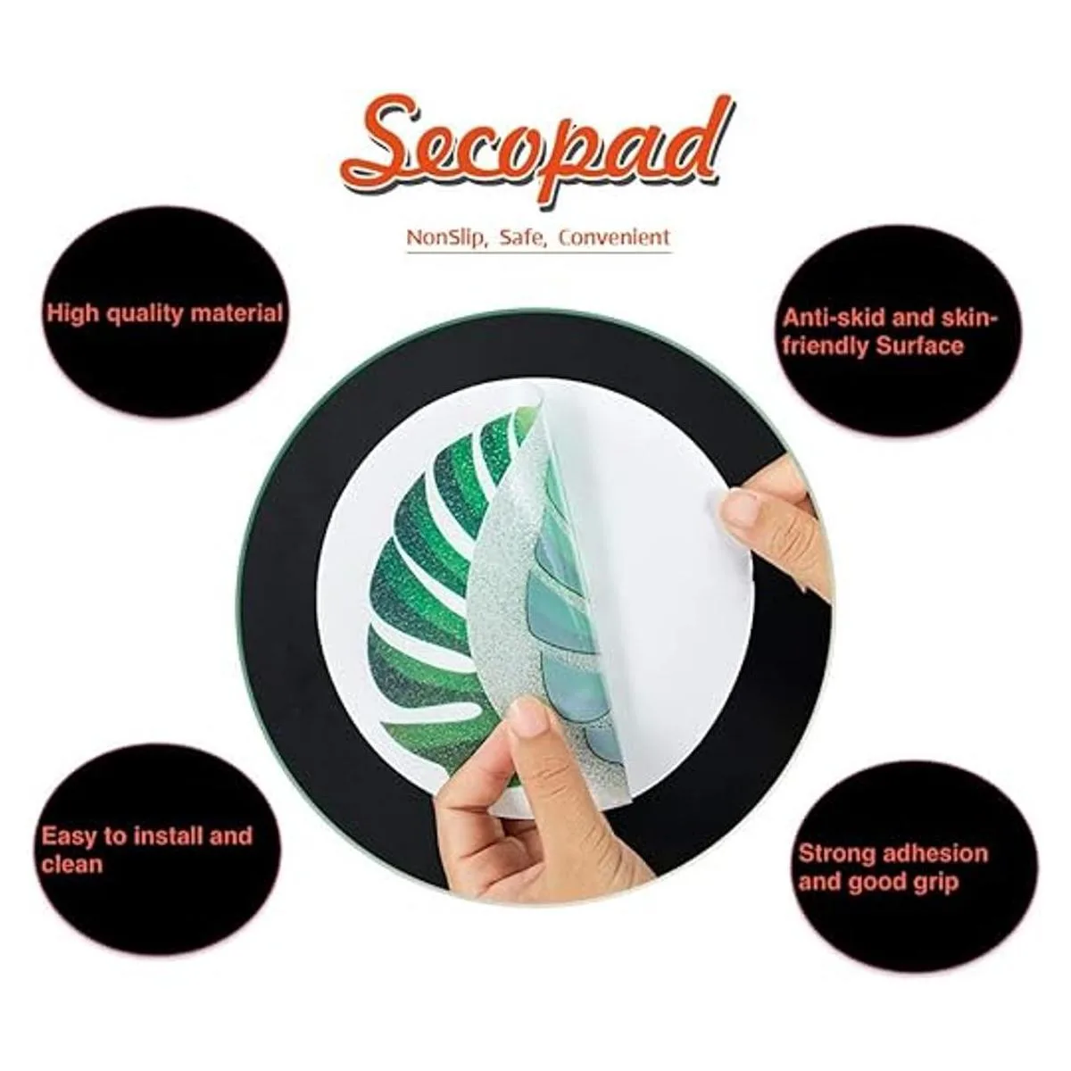 Secopad Calcomanías antideslizantes para tina, 10 piezas de hojas grandes adhesivas antideslizantes para ducha y bañera con raspador de alta calidad