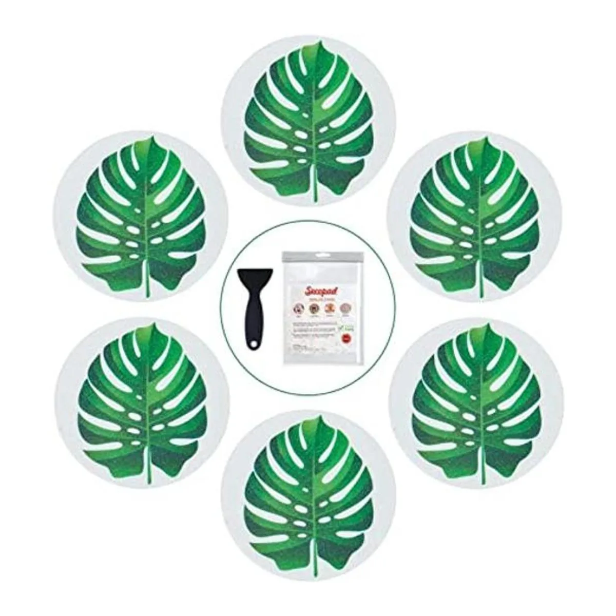 El paquete consta de 10 piezas diámetro de aproximadamente 5.9 in de calcomanías de hojas junto con 1 raspador de silicona de alta calidad. Idealmente, las 10 calcomanías pueden ocupar la mayoría de la superficie de la bañera, reduciendo así el riesgo de resbalones accidentales. Además de eso, incluso puedes utilizar algunas de las 10 calcomanías en la pared de la ducha o refrigerador para divertirte más.