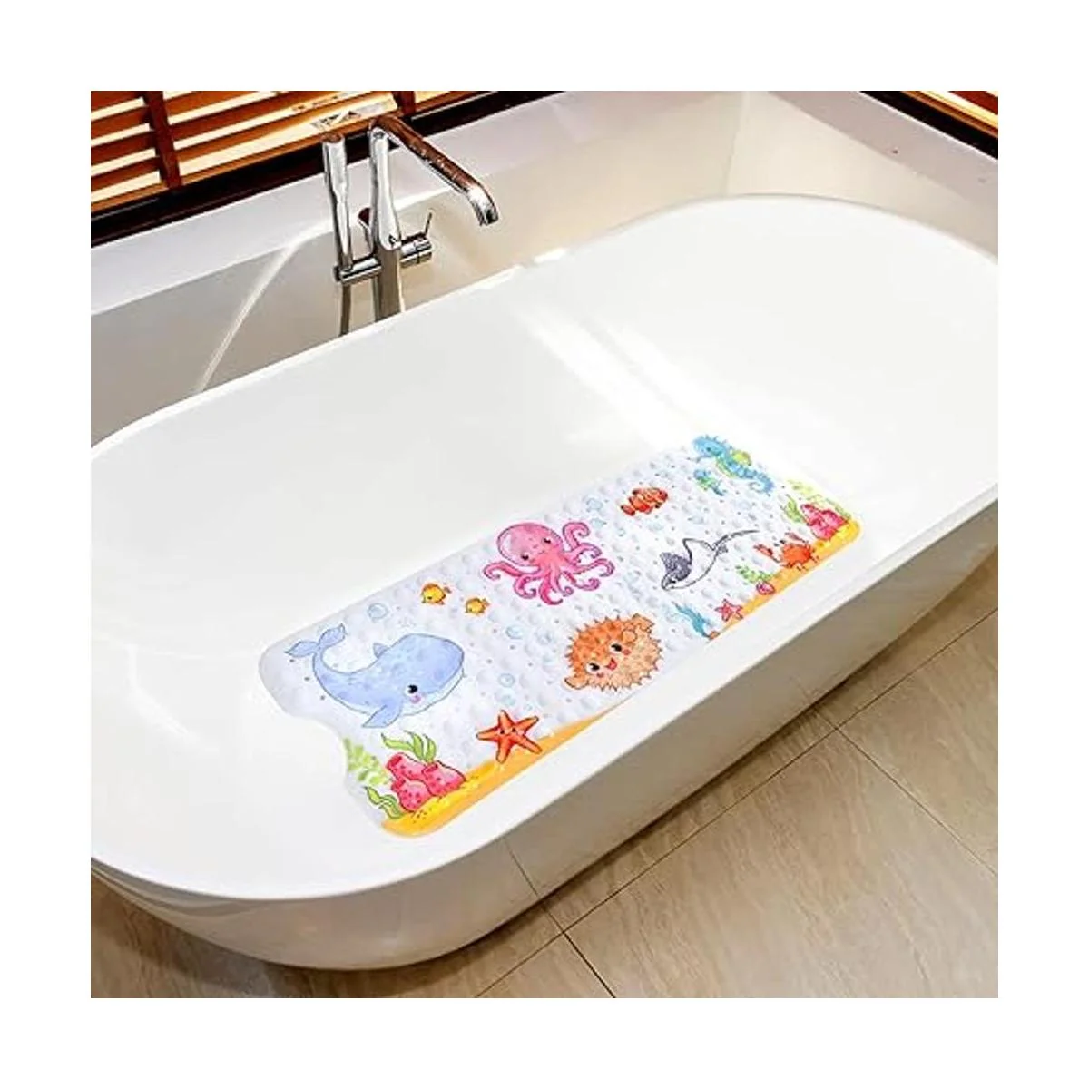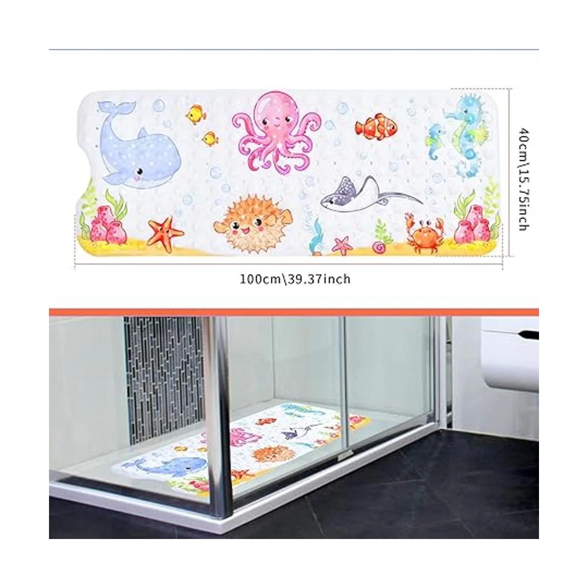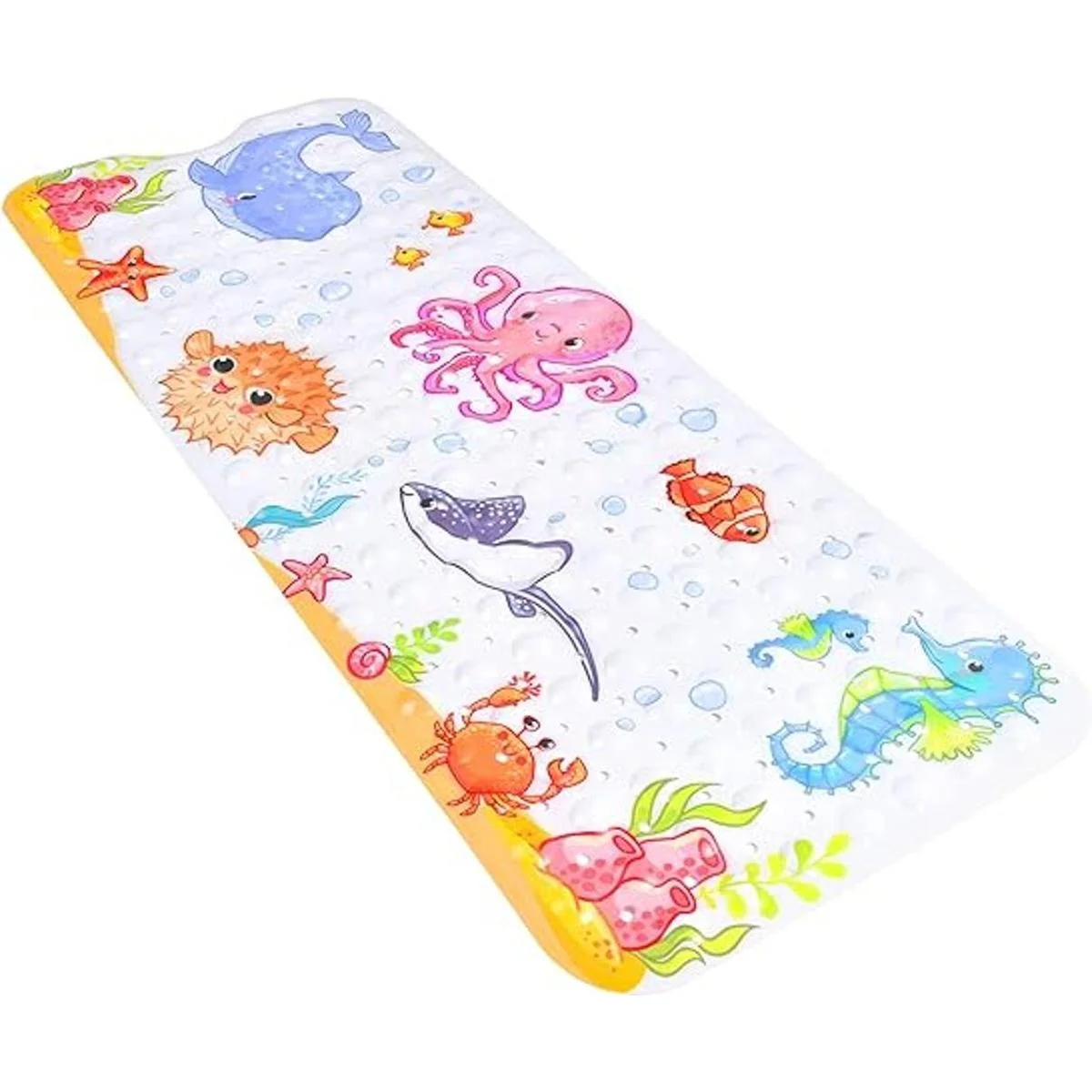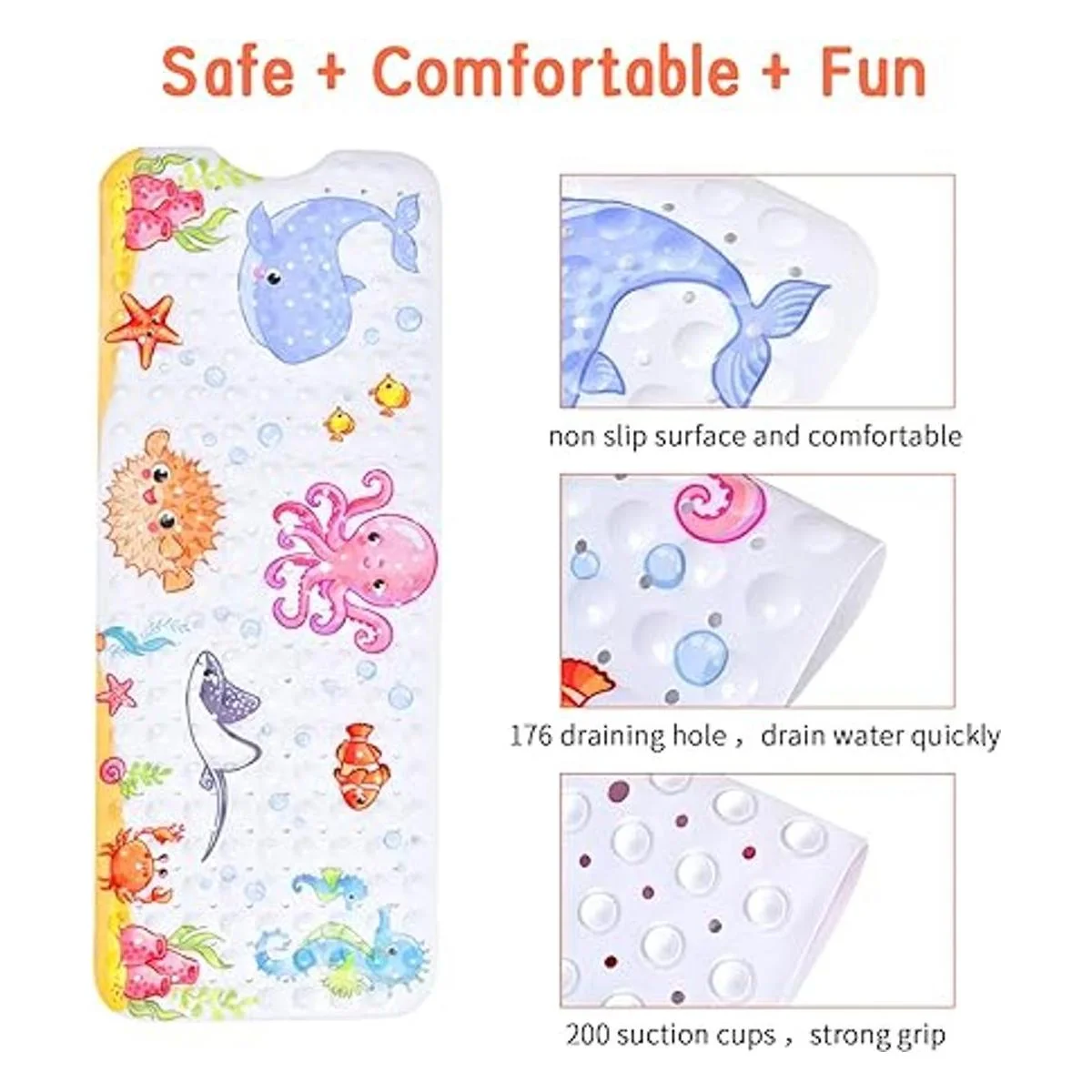 Secopad Tapete de baño para niños, antideslizante, de 40 x 16 pulgadas, de dibujos animados grandes, antideslizante, tapete de baño para bebé, drenaje izquierdo