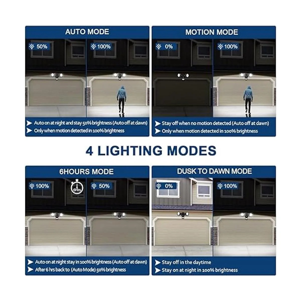 Intelligent Control Modes This Dusk to Dawn Waterproof Security Light has 4 lighting options with 4 switches, free to choose the most suitable lighting style.