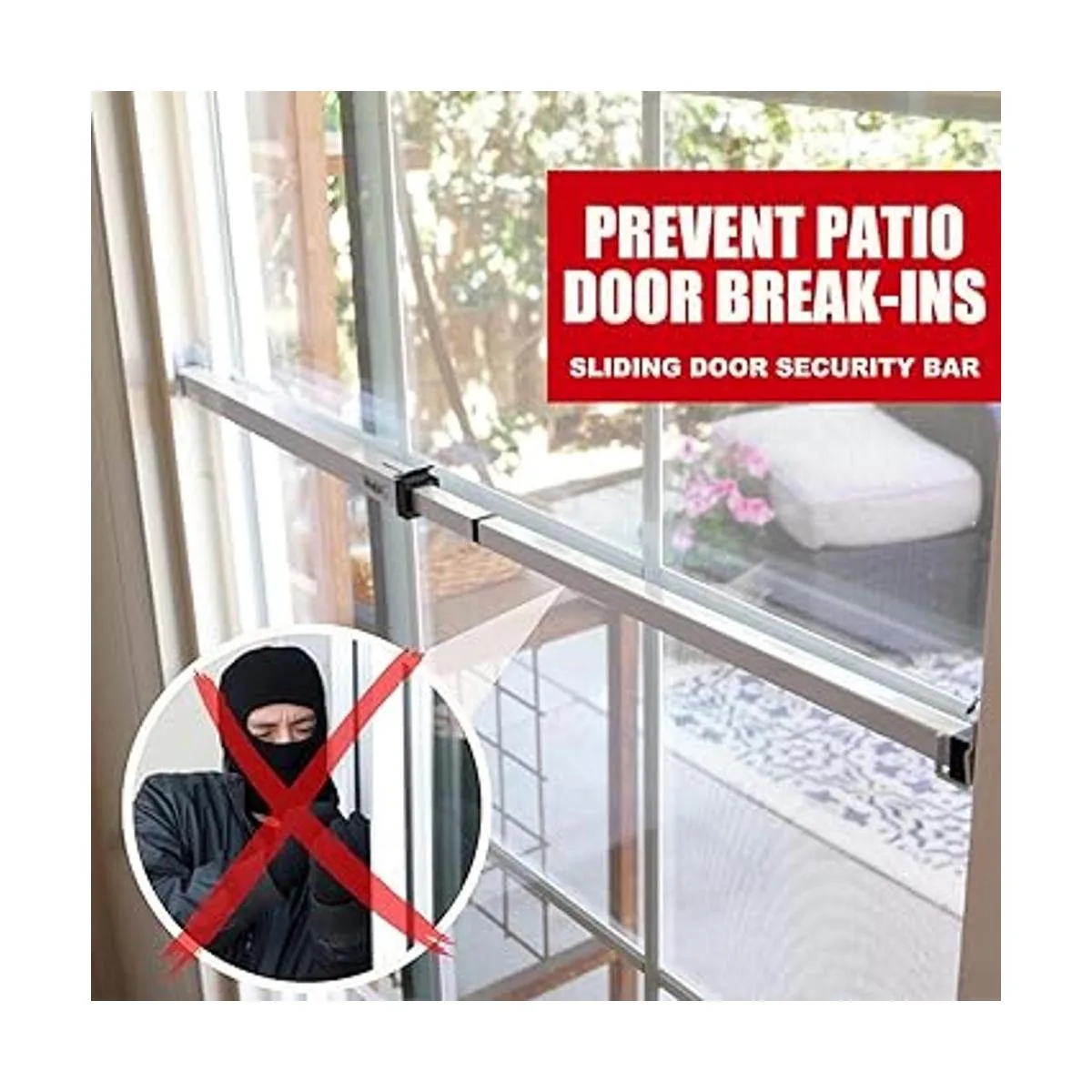 Los intrusos no podrán entrar: barra de seguridad resistente para puertas y ventanas que sirve como un elemento disuasivo físico y visual para la mayoría de las puertas y ventanas de patio