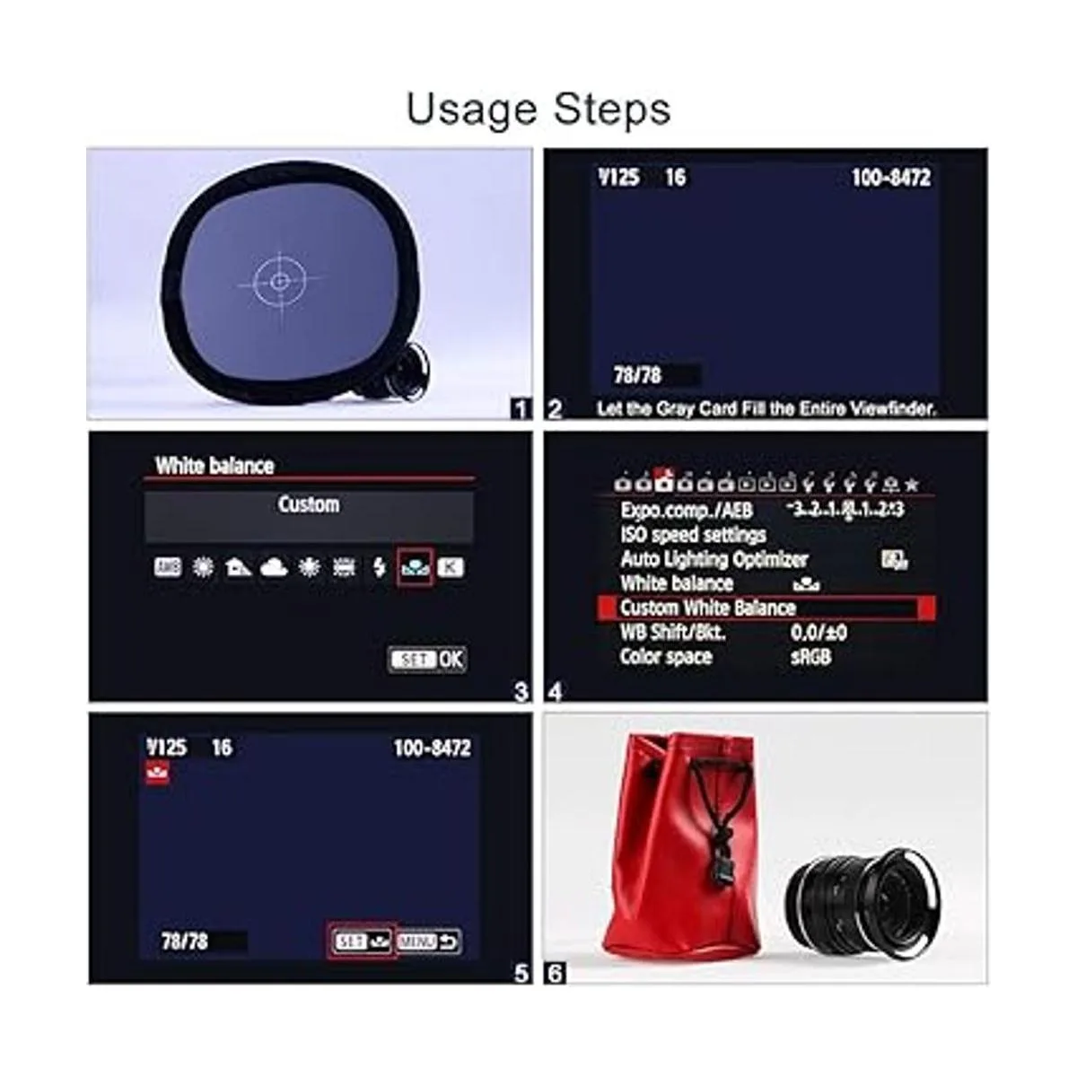 Includes gray/white Balance card x 1 and a carry bag.