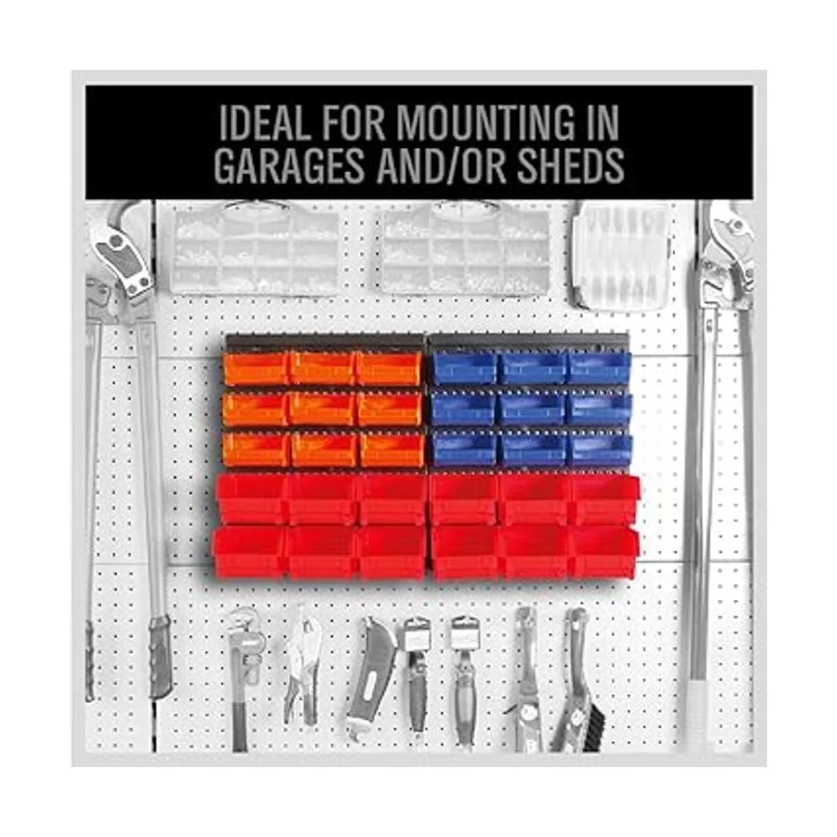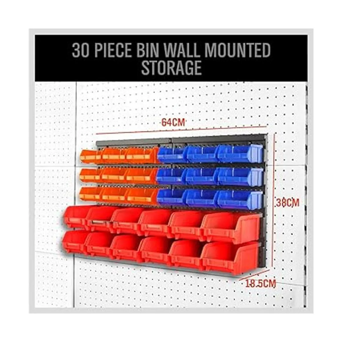 Este estante de almacenamiento montado en la pared de 30 contenedores ayuda a mantener todas tus piezas y accesorios perfectamente organizados y a mano. Solución de almacenamiento versátil para talleres, garajes y cobertizos. Con contenedores extraíbles que son de fácil acceso y conveniente. 100 nuevo, el color es brillante, completamente diferente del producto inferior.