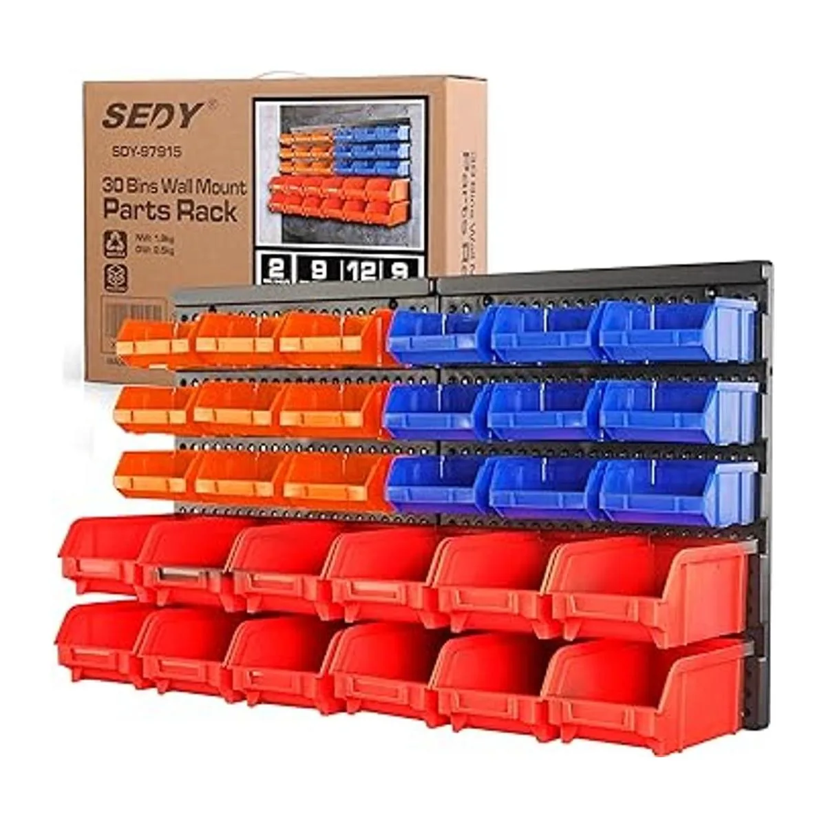 SEDY Estante de 30 contenedores de almacenamiento montado en la pared, organizador de herramientas con tablero de clavijas de montaje en pared y tornillos de instalación para garaje o cobertizo de herramientas, el mejor regalo único para hombres