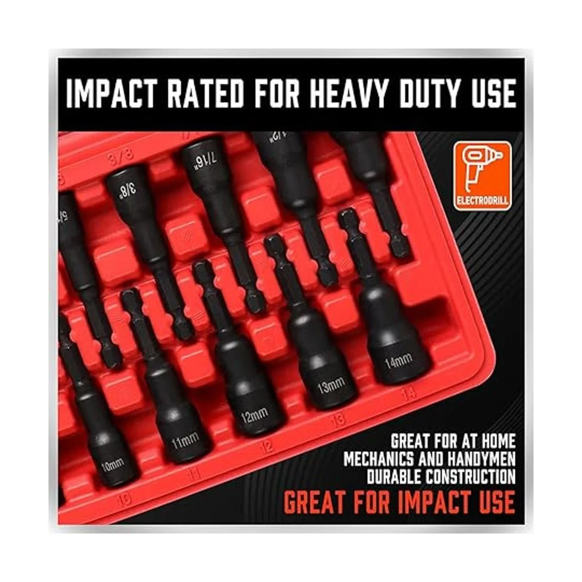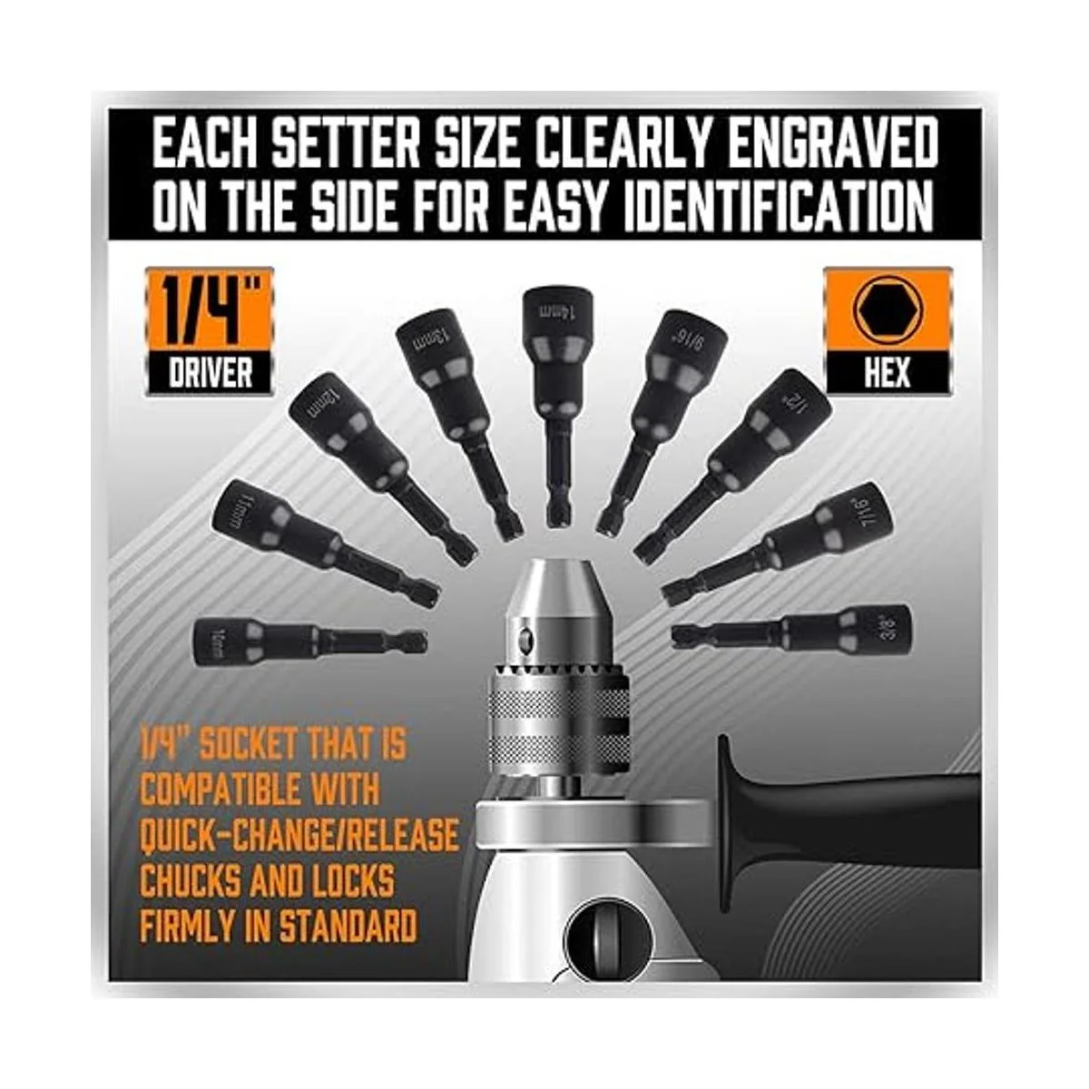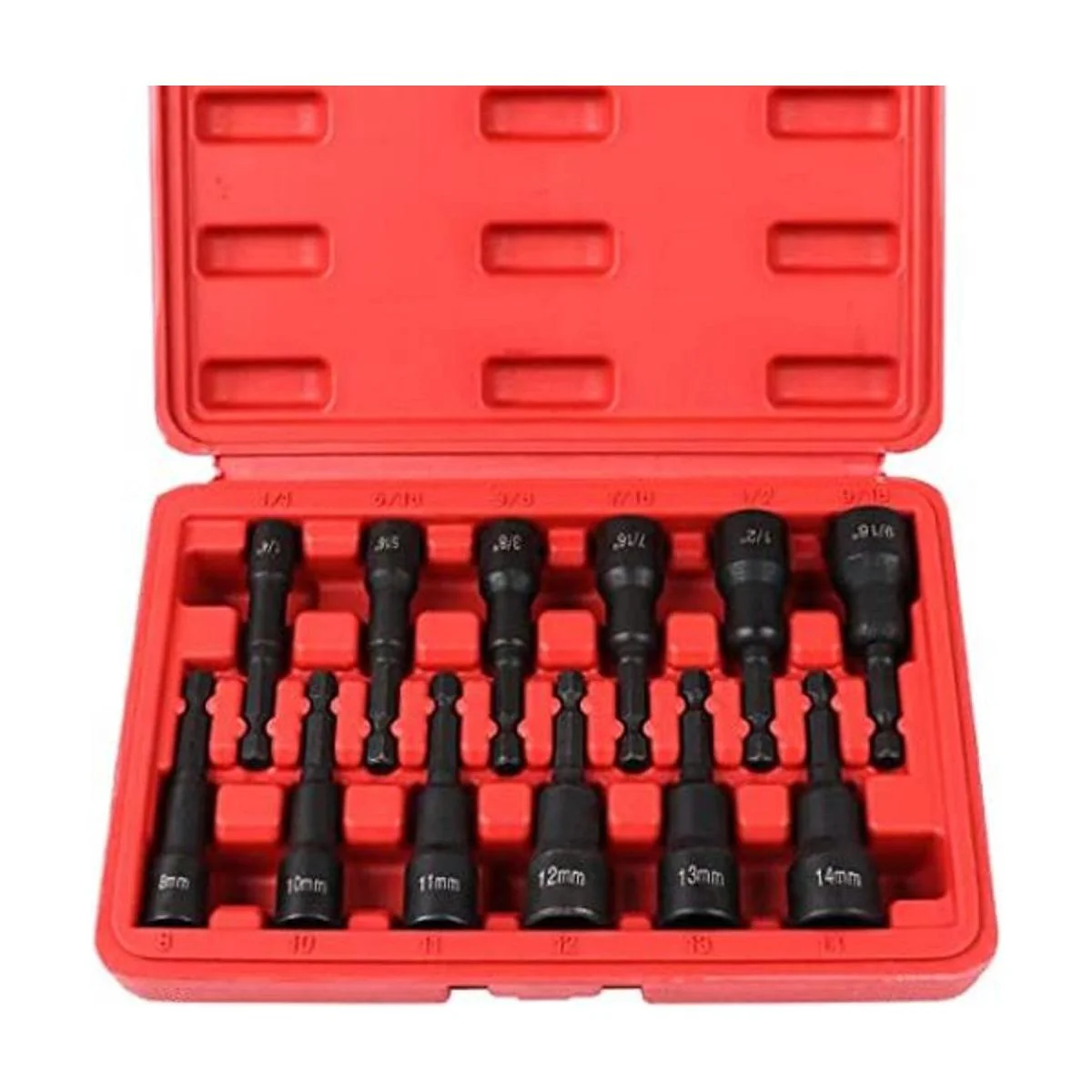 SEDY Kit maestro de destornillador de tuerca hexagonal magnética, acero CrV vástago hexagonal de cambio rápido de 14 pulgadas SAE y métrico Juego de herramientas de brocas de destornillador de tuercas eléctricas de 12 piezas