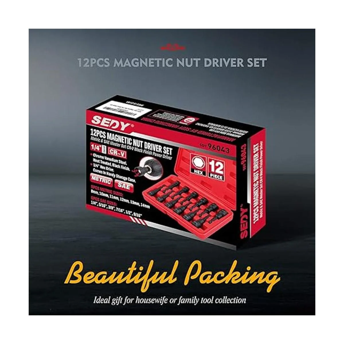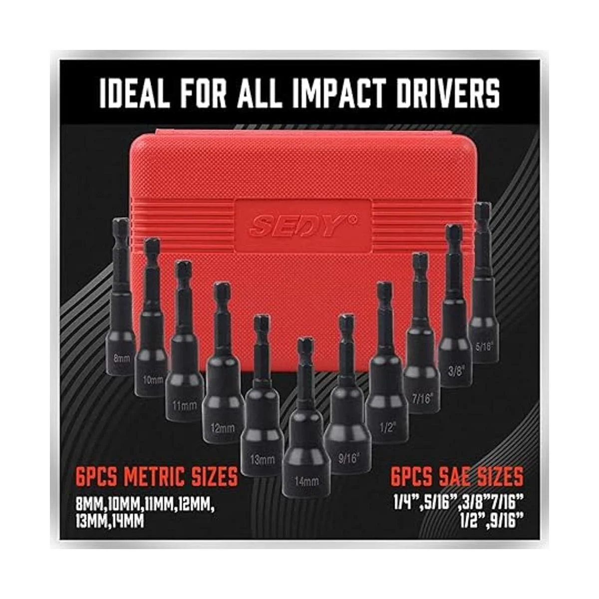 SEDY Kit maestro de destornillador de tuerca hexagonal magnética, acero CrV | vástago hexagonal de cambio rápido de 1/4 pulgadas | SAE y métrico | Juego de herramientas de brocas de destornillador de tuercas eléctricas de 12 piezas