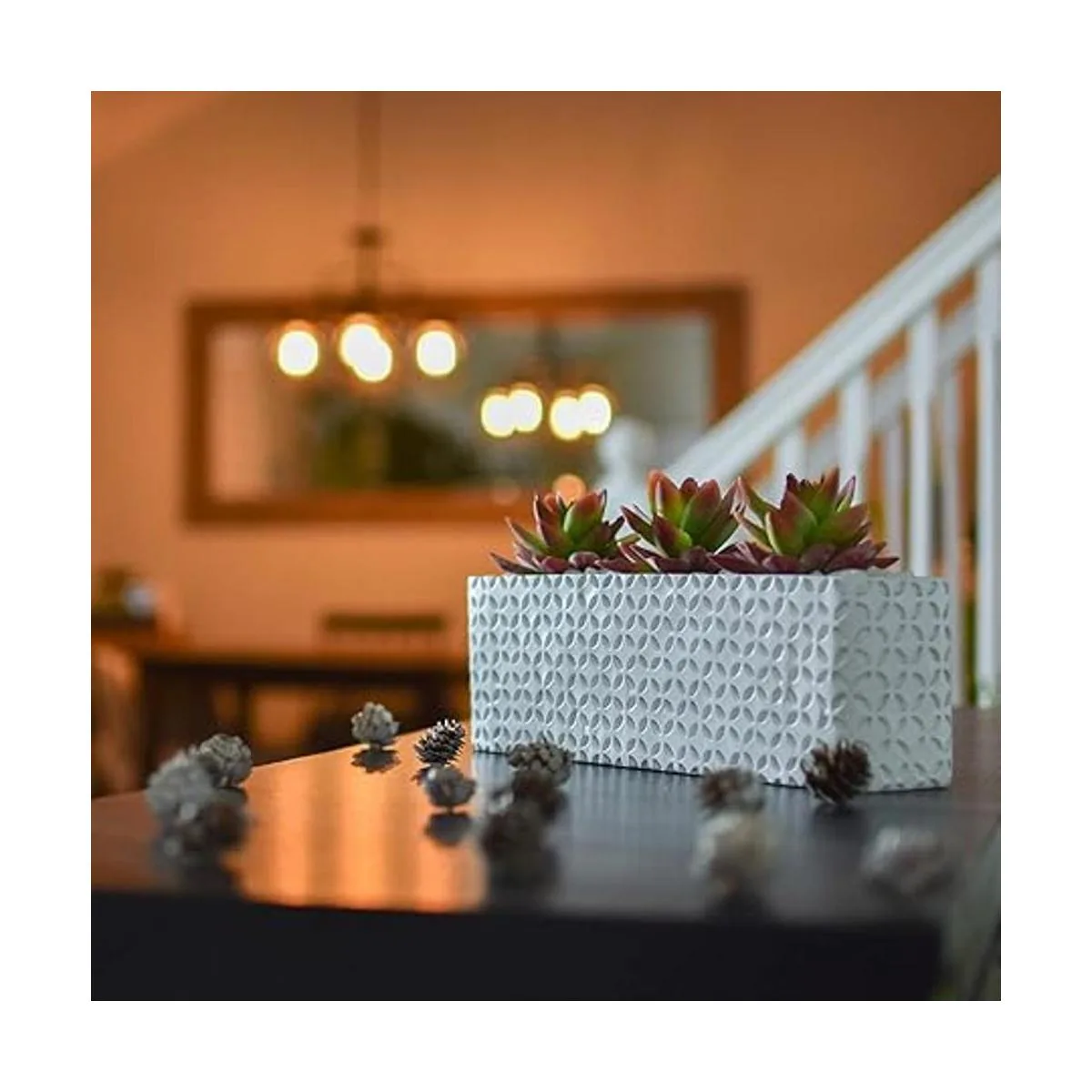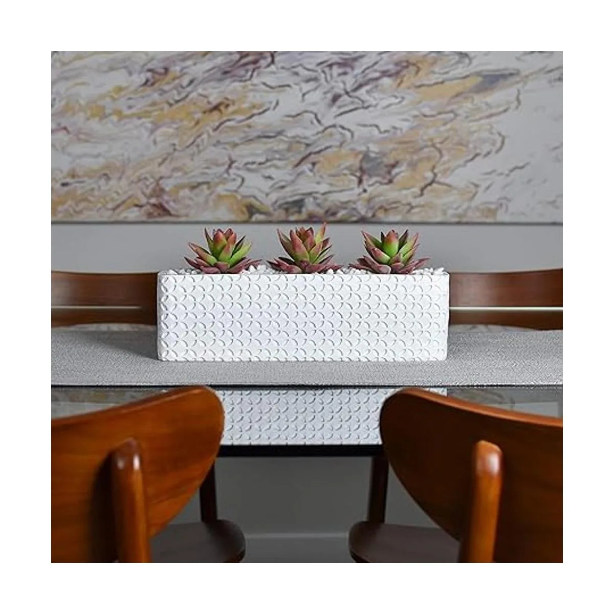 Varios tamaños: la maceta delgada para suculentas artificiales SEEKO mide 13 pulgadas de largo, añadiendo vida y calidez a cualquier espacio sin nada del trabajo de plantas reales. Te ahorramos la marca de decoración de habitaciones de pequeñas plantas falsificadas con macetas rectangulares de cerámica de calidad para que coincida con la decoración moderna en tu cocina, oficina, baño y más allá