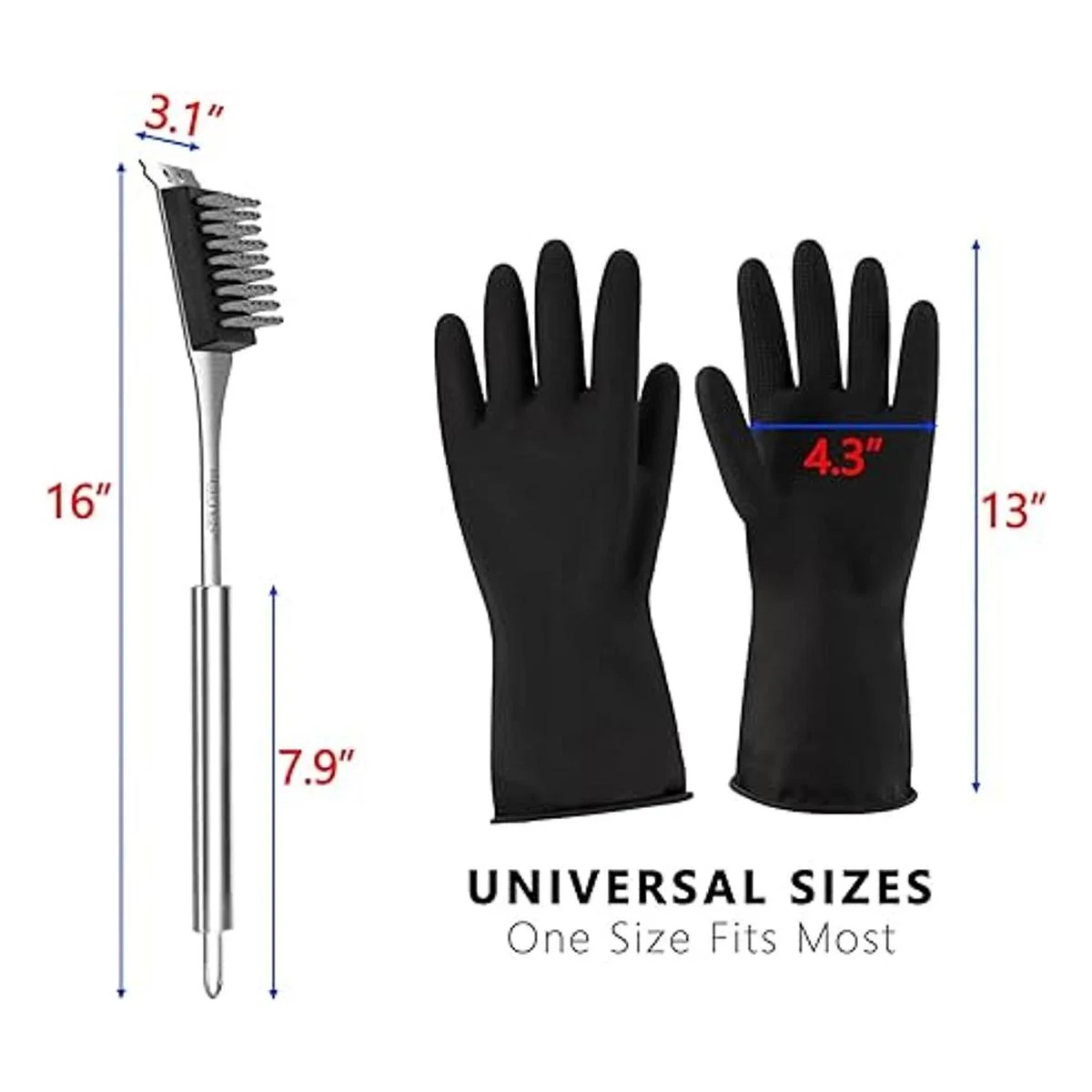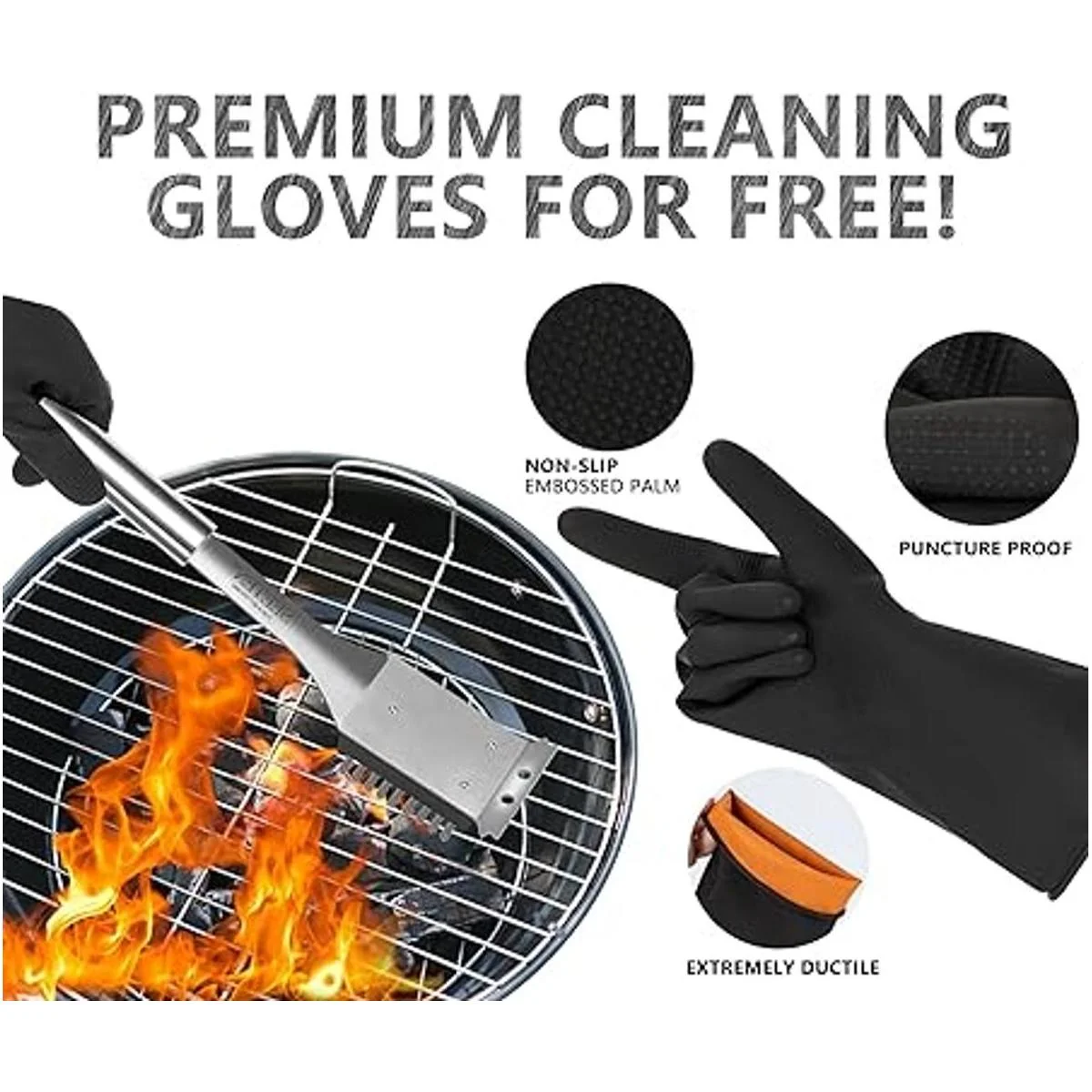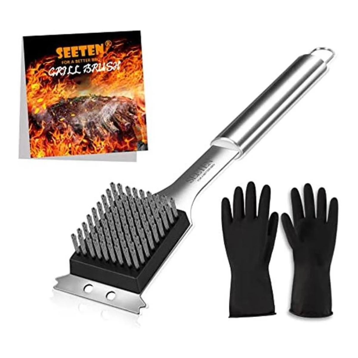 SEETEN Cepillo de parrilla y raspador con 1 guante de limpieza reutilizable, seguro y fuerte, de 16.0 in, cepillo de limpieza de parrilla de acero inoxidable sin cerdas de alambre que se caen, bonitos accesorios de parrilla regalo