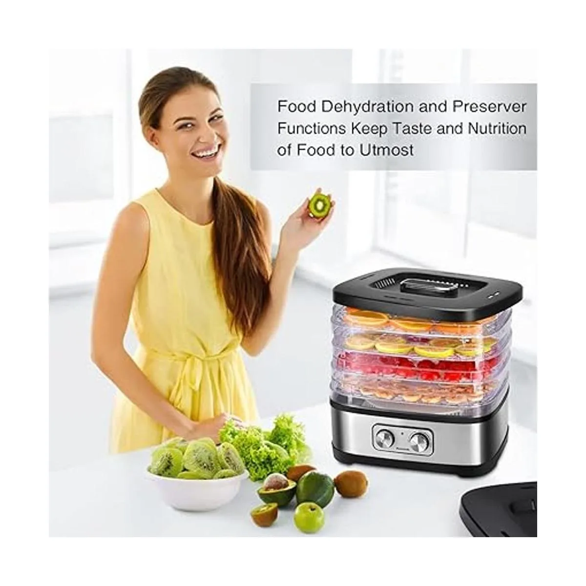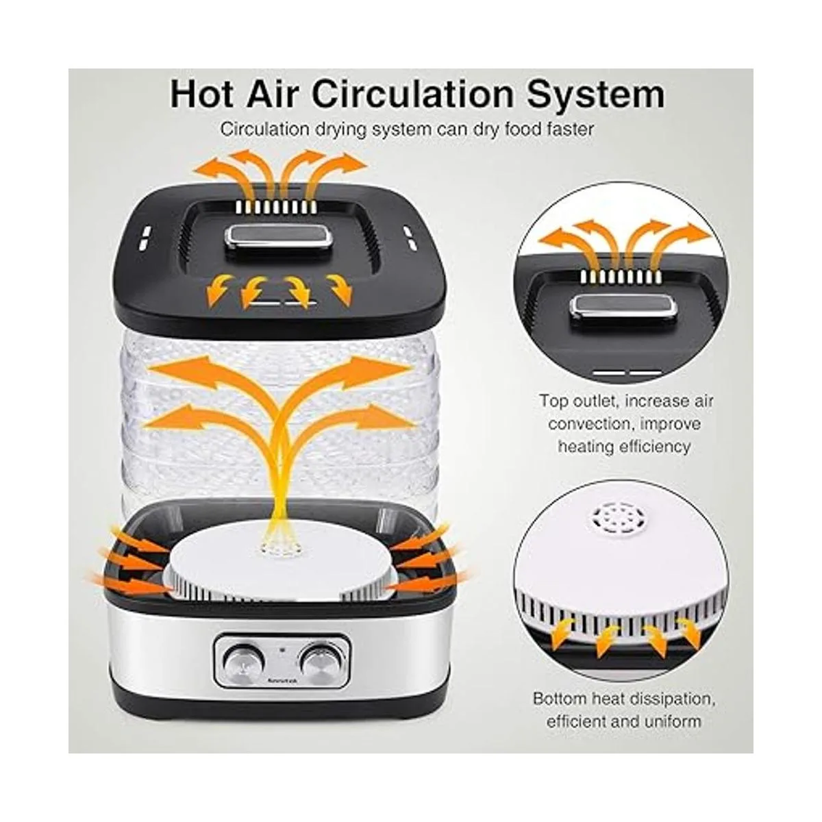 Seeutek Máquina deshidratadora de alimentos para carne de vacuno, frutas, verduras, secadora eléctrica con 5 bandejas sin BPA, control de temperatura ajustable, libro de recetas y 4 bolsas de almacenamiento reutilizables