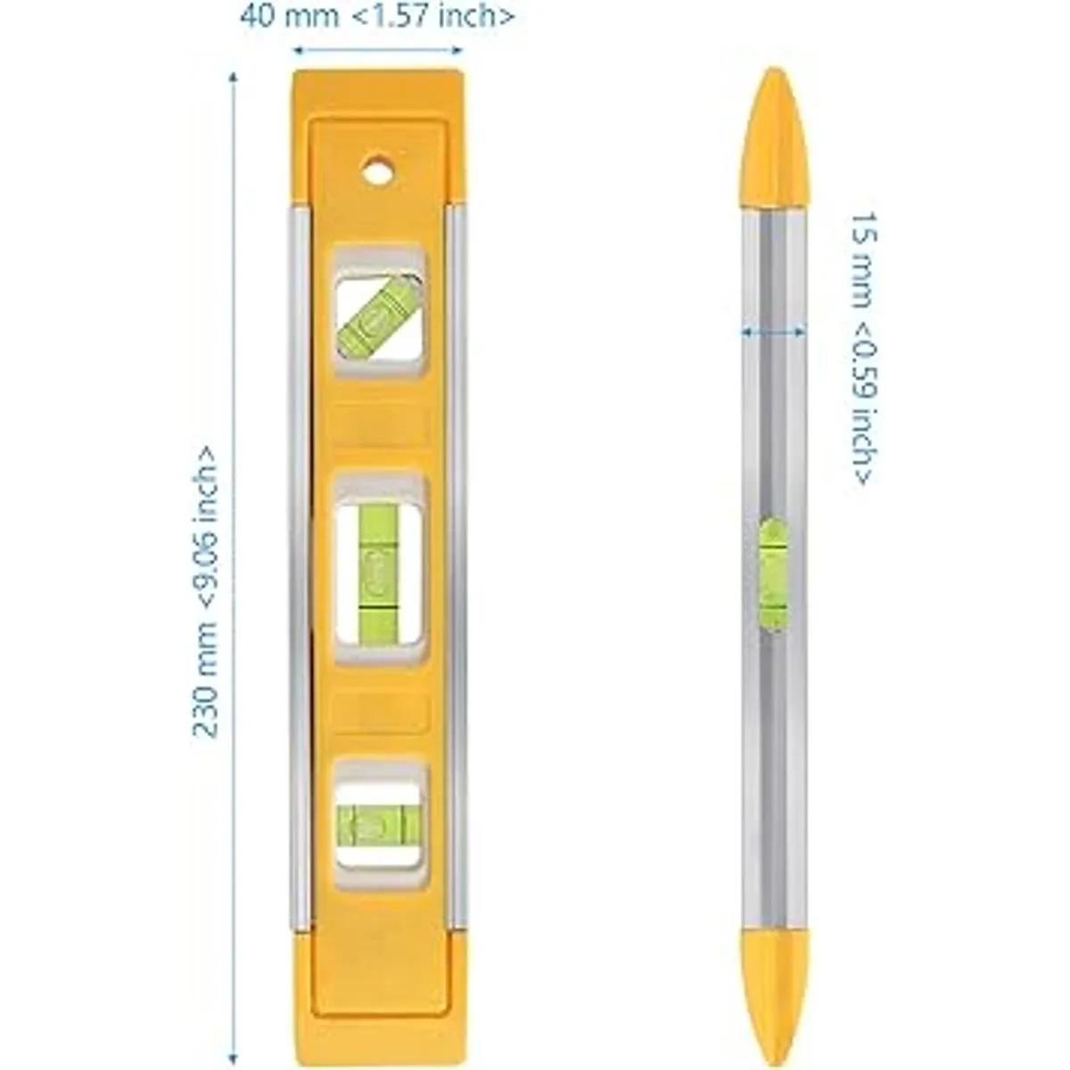 Ampliamente utilizado: los niveles de torpedo de plástico ligero hacen que la medición sea mucho más fácil, especialmente en espacios pequeños. Es muy adecuado para decoración, artículos del hogar y trabajos de alineación relacionados, como pinturas, estantes, fotos, etc.