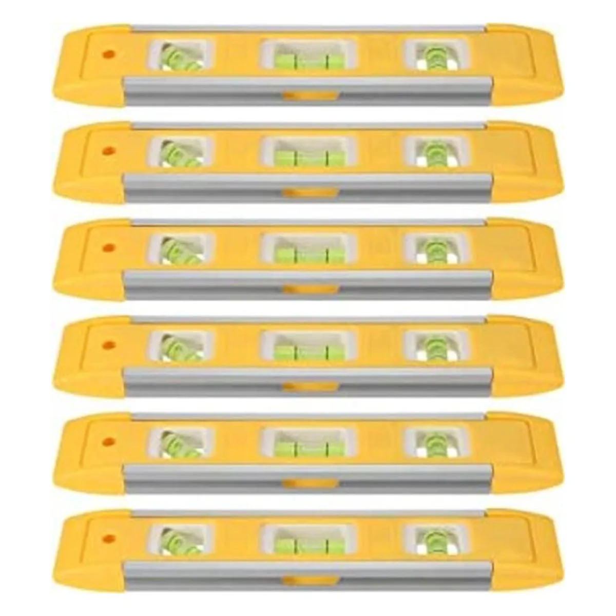 SEHOI Paquete de 6 niveles de torpedo magnético de 9 pulgadas con burbujas de 45, 90, 180 grados, carcasa de plástico resistente a los golpes, nivel de torpedo, herramienta de medición de nivel de alcohol amarillo