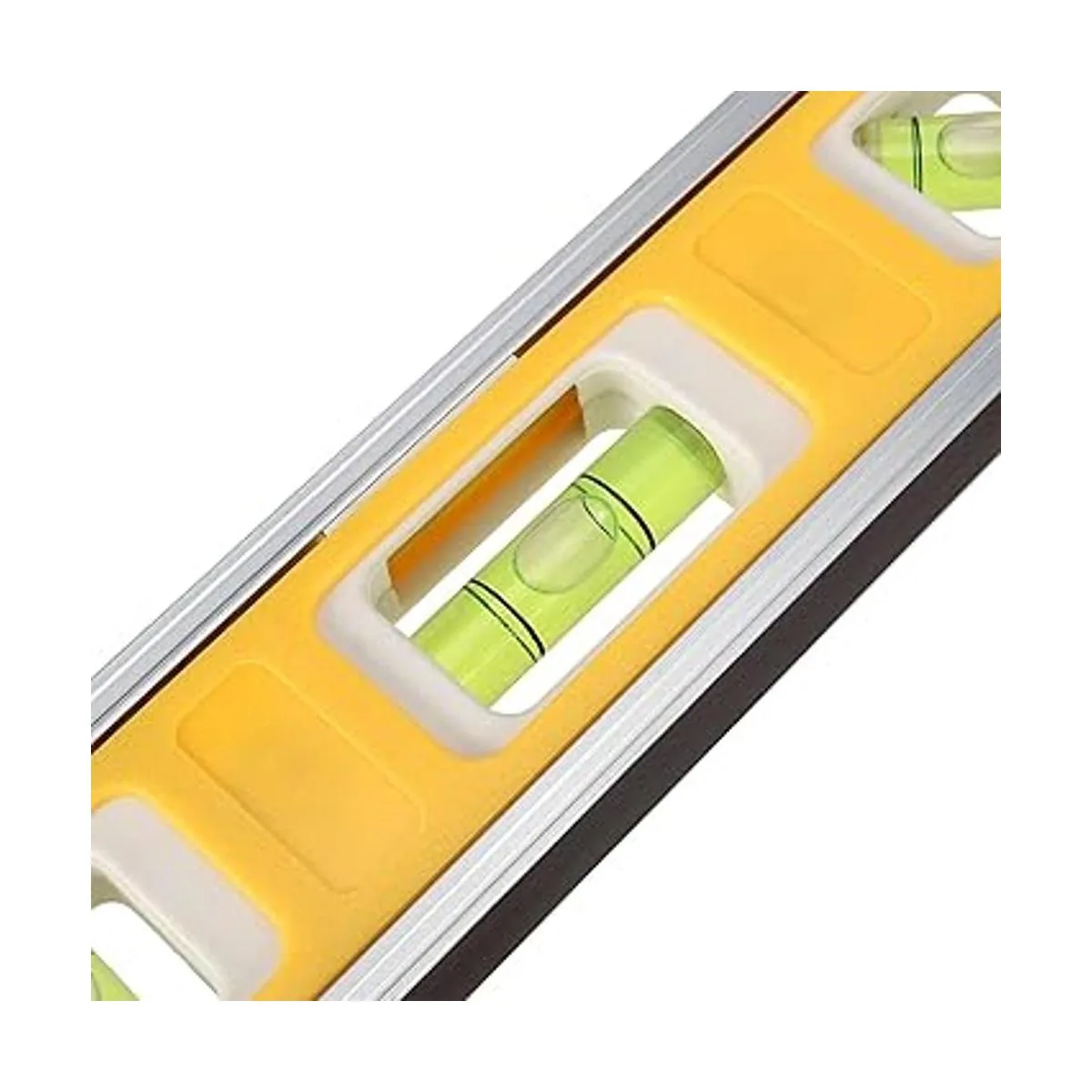 Burbuja de alta definición: las 3 burbujas integradas de alta definición incrustadas en el nivel de torpedo magnético se pueden medir verticalmente, horizontalmente y a 45 grados. El color fluorescente de las burbujas es muy llamativo, lo que te permite observar clara e intuitivamente si el objeto está nivelado. Hay una ventana en la parte superior, que es conveniente para ver desde arriba.
