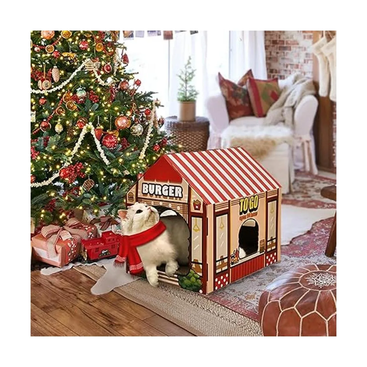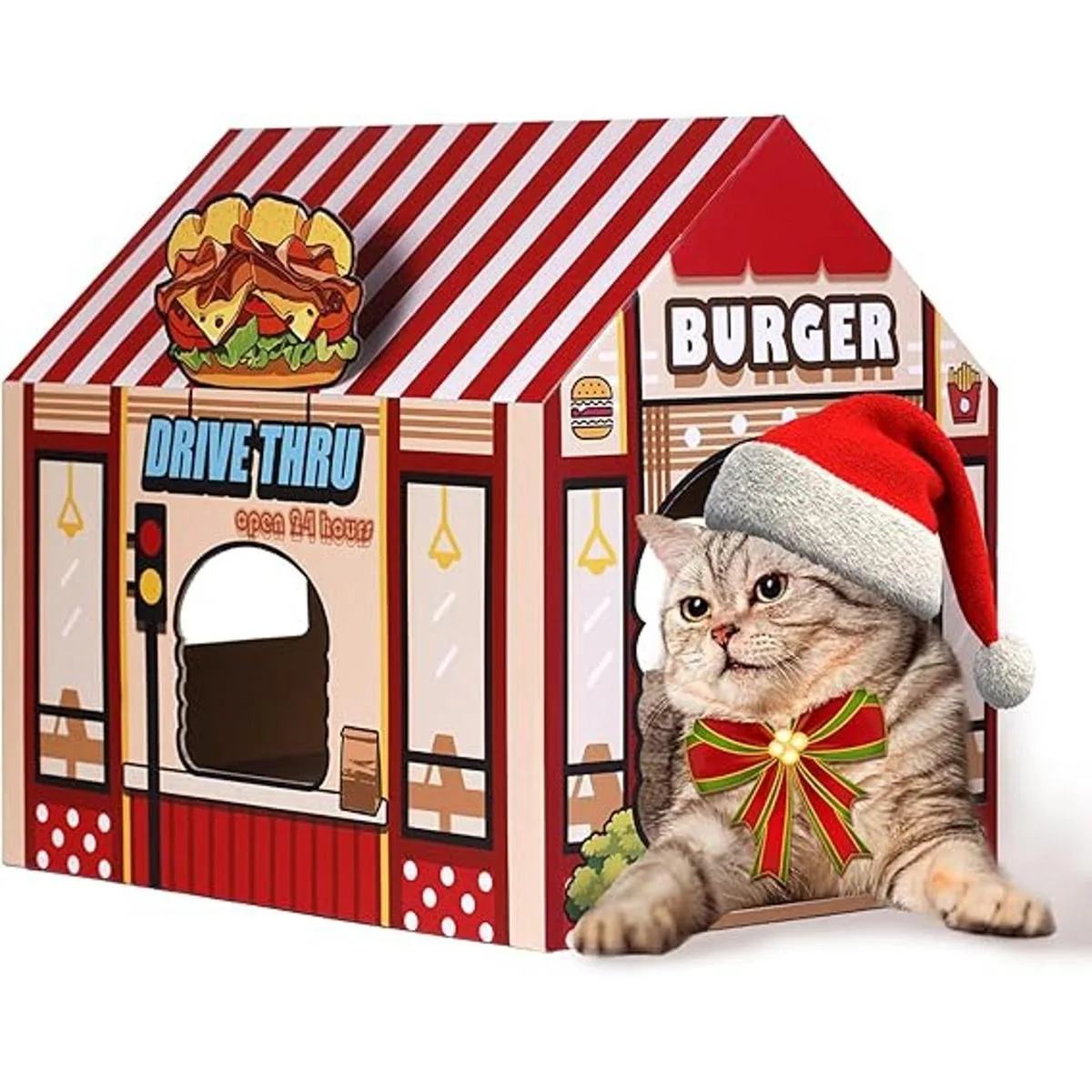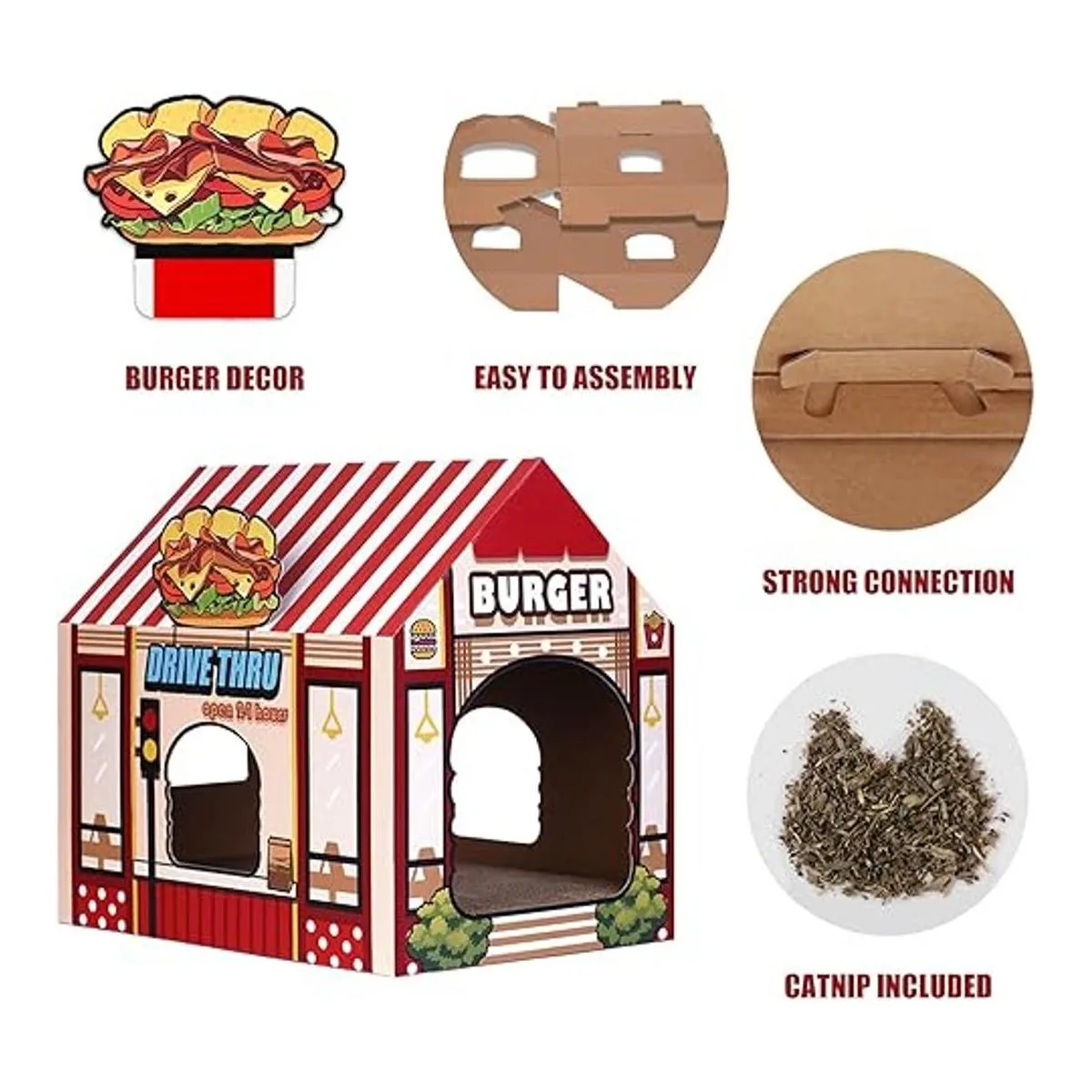 SEKAM Cardboard ScratcherCatnip with House, Cat Play House for Indoor Cats, Cat Scratch Toy for Cat Birthday, Cat House for Sleeping, Cat Scratching Pad for Exercise