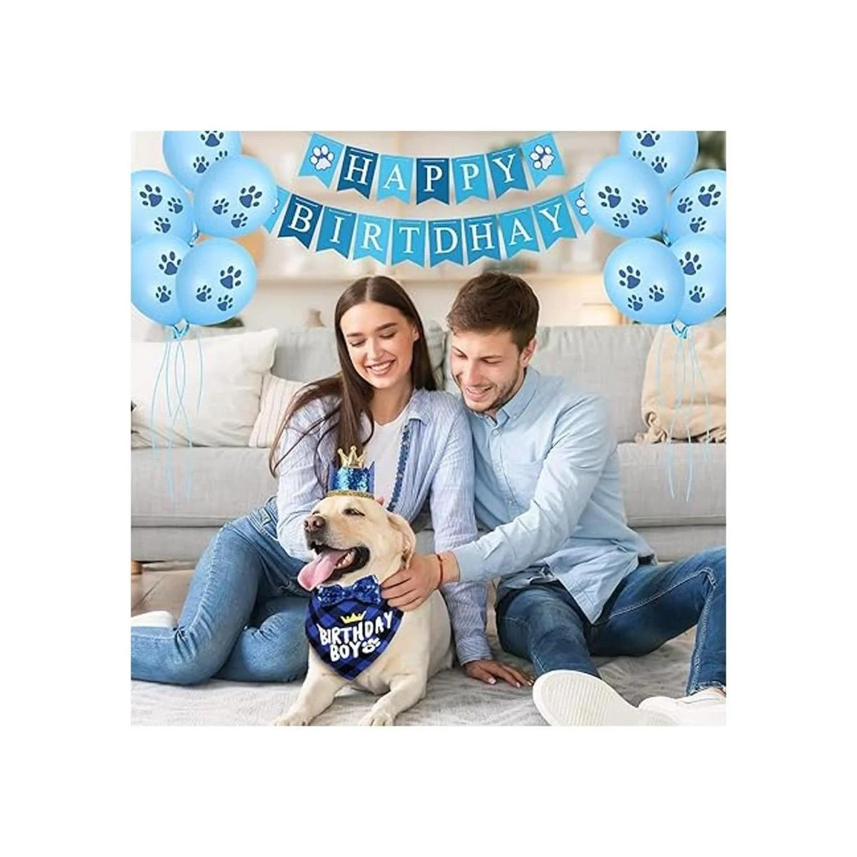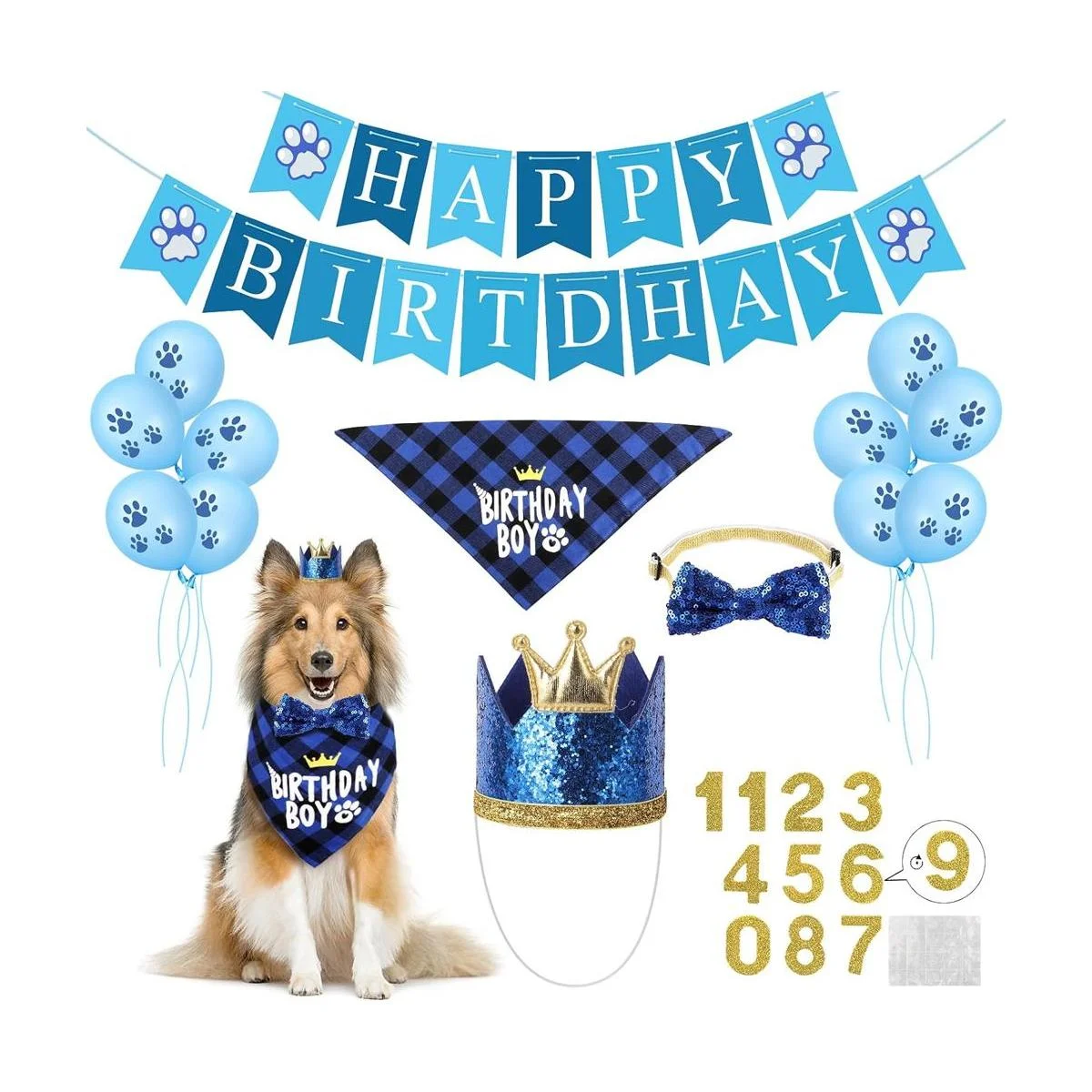 Selemoy Suministros de fiesta de cumpleaños para perros, bandana de cumpleaños para perro con lindo perro, sombrero de fiesta de cumpleaños, globos de pata, pancarta de feliz cumpleaños para perro, cachorro, suministros de fiesta de cumpleaños