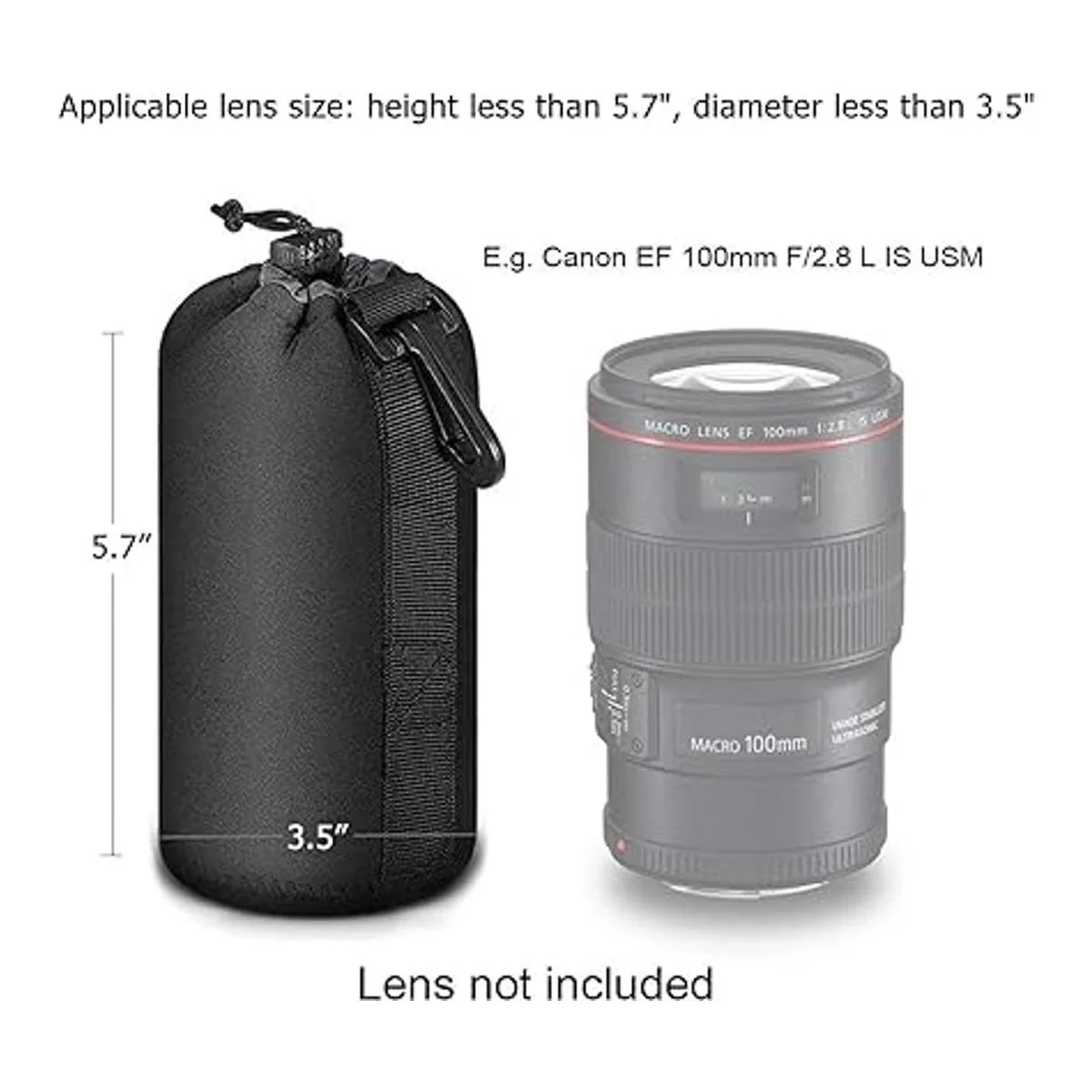 Dimensiones: 3.5 x 5 pulgadas. Tamaño de lente aplicable: altura inferior a 3.9 in, diámetro inferior a 3.5 in