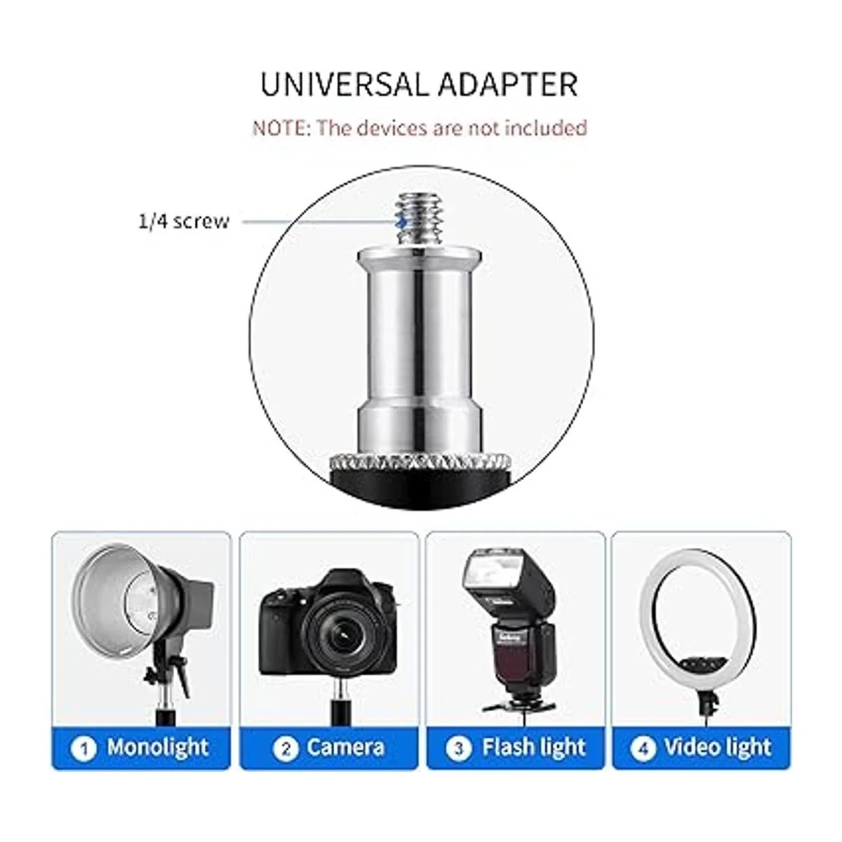 Amplia aplicación: viene con tornillo adaptador de 1/4 para aplicar a diferentes flashes.