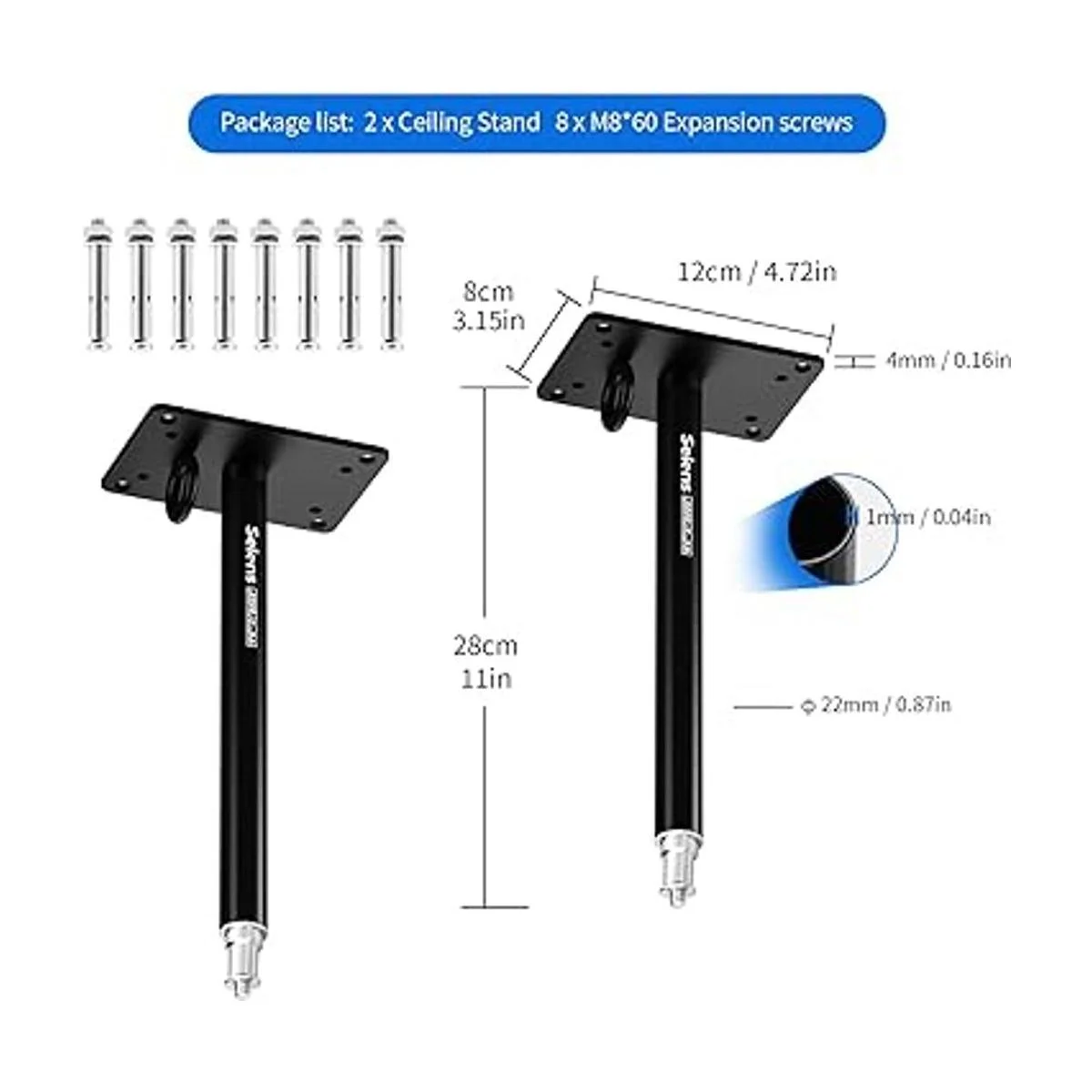 Selens Paquete de 2 soportes de techo para cámara, soporte de pared de 11 pulgadas con adaptador universal de 14 pulgadas para luz de video, anillo de luz, caja de luz, reflector, luz LED