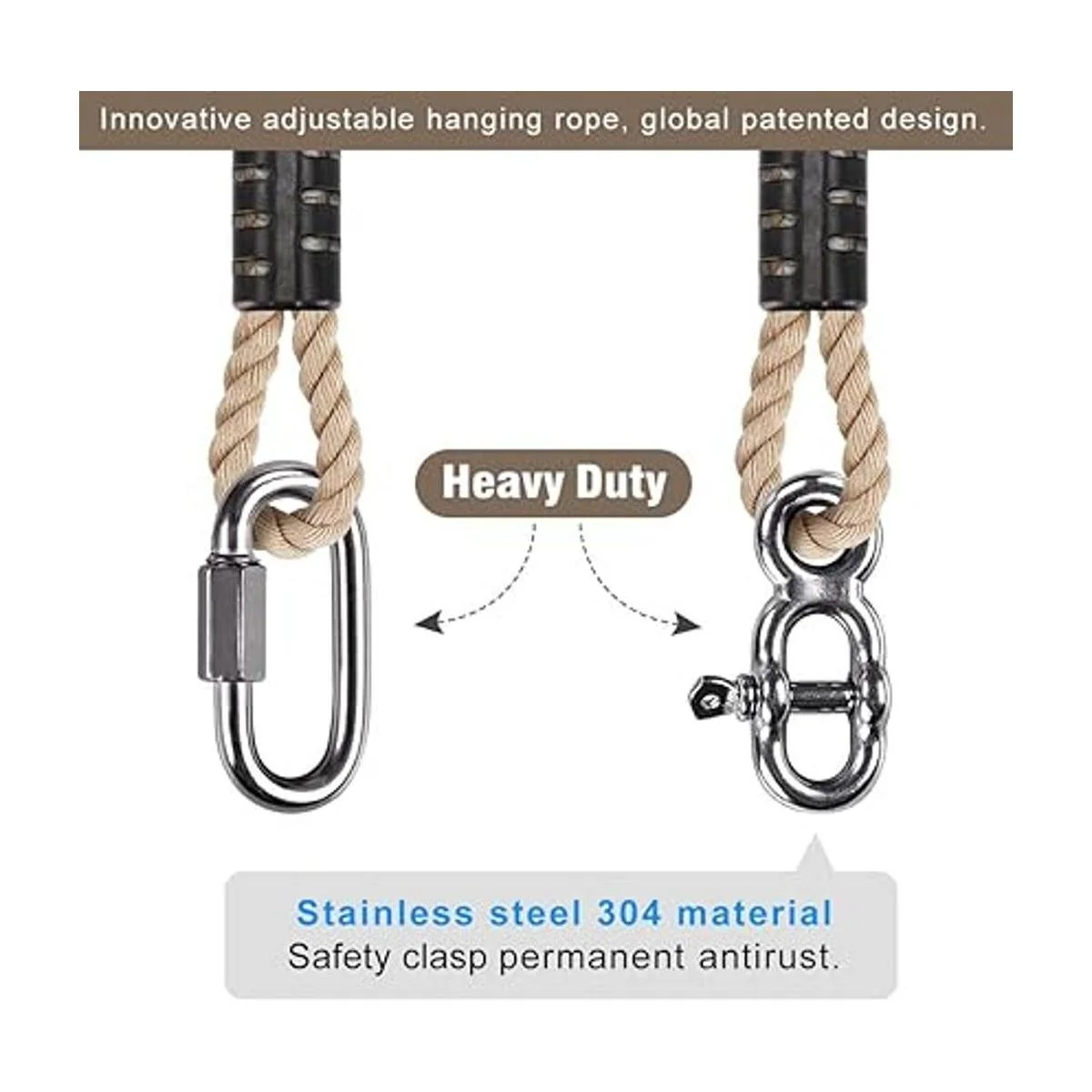 Multifuncional: cuerda de suspensión rápida y fácil de extender cualquier columpio, se adapta perfectamente a columpio giratorio, hamaca al aire libre, yoga volador aéreo, silla de cuerda colgante, columpio de jardín, columpio de neumáticos, columpio de disco, columpio de cincha, columpio de árbol clásico, columpio de patio para niños, columpio de interior, y asiento colgante de nido para niños, etc.