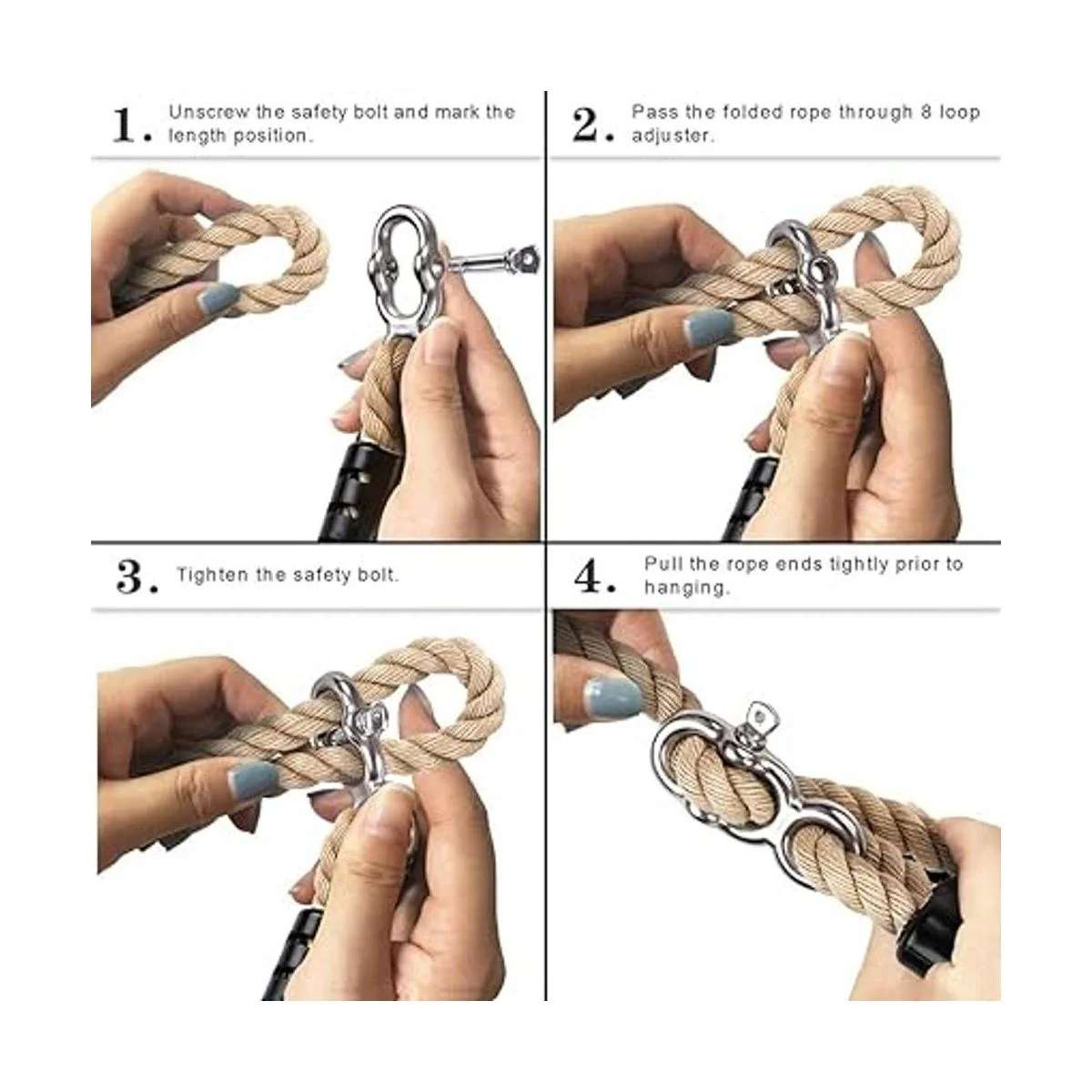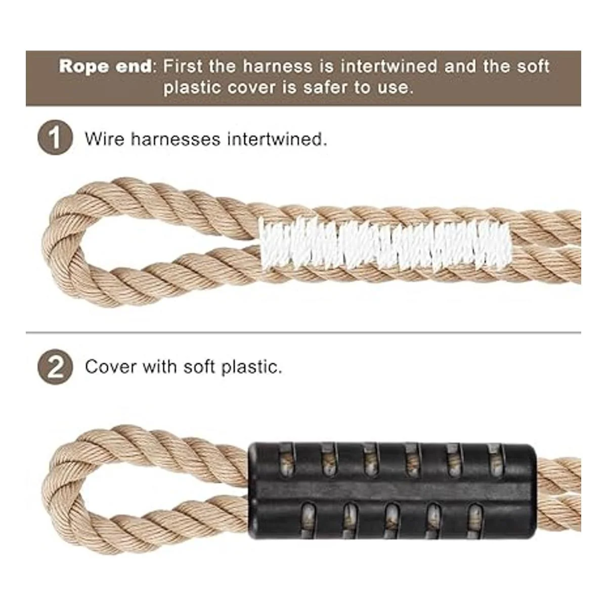 Fácil de usar: no necesita ningún otro hardware, cuelga fácilmente cualquier columpio en el árbol o juego de juego. Primero: Uso colgante, simplemente colócalo sobre un árbol o viga y fija los ganchos a tu columpio o muebles de patio; Segundo: Uso ajustable, abre el cierre de seguridad, pasa la cuerda a través de la hebilla de metal, bloquea y luego tira de los extremos de la cuerda apretados.