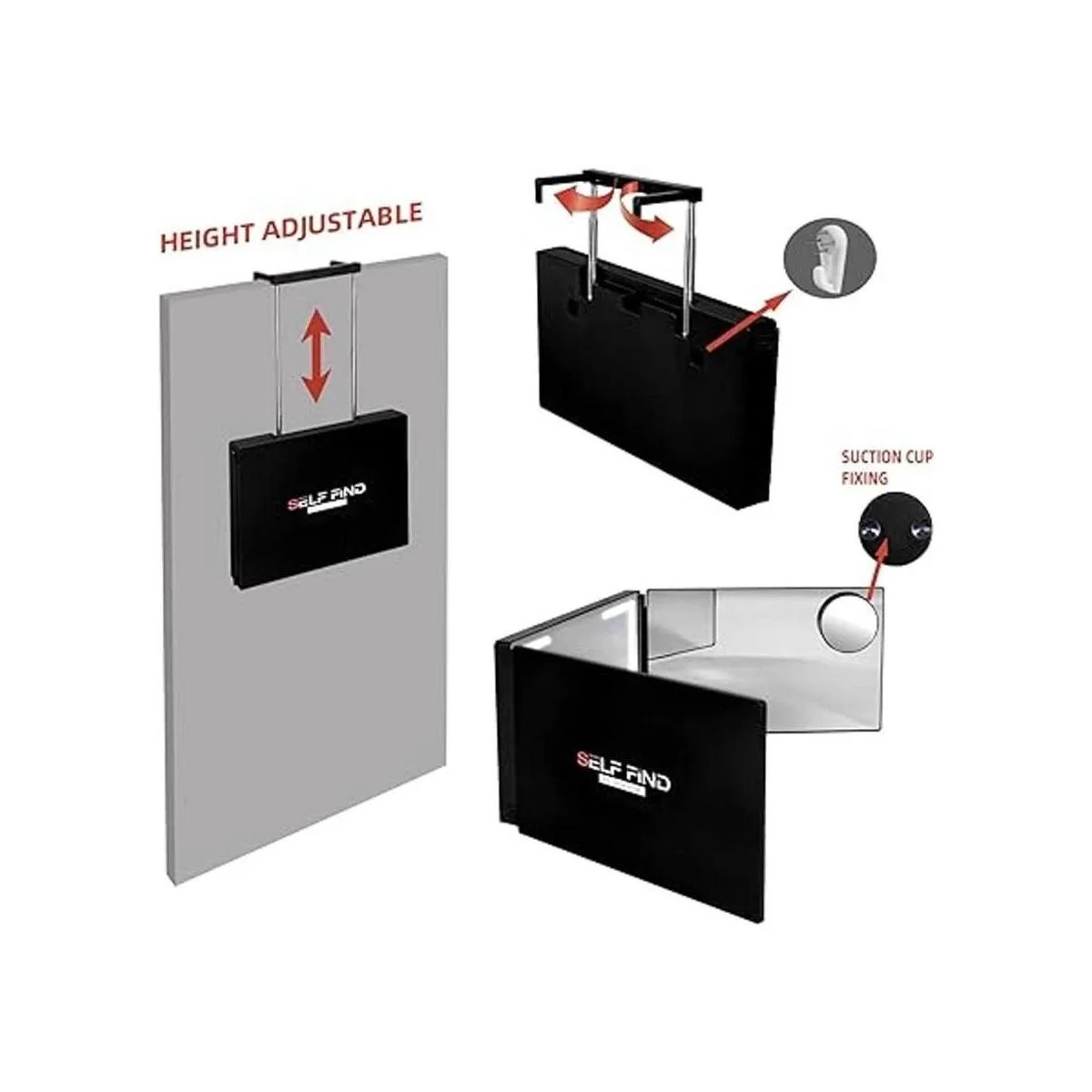 Gancho fuerte: el núcleo de acero integrado se utiliza dentro del gancho para evitar el riesgo de que el gancho sea fácil de romper debido al estrés frecuente. Ahora nunca te preocupes por que el gancho se rompa mediante el uso de este espejo de corte de pelo.