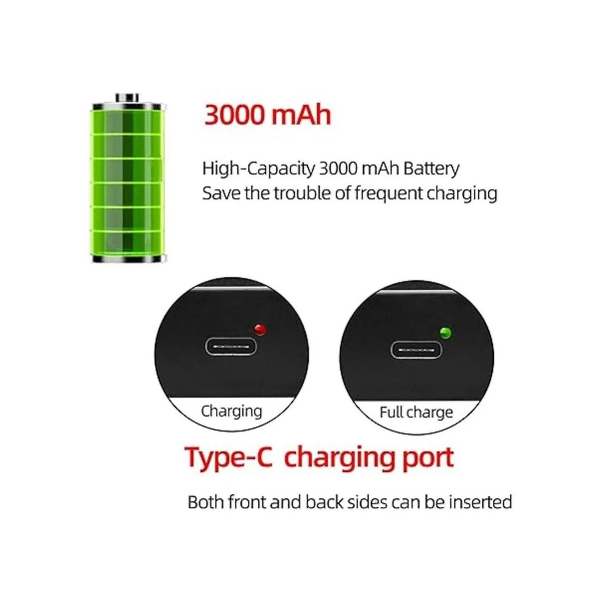 Batería de gran capacidad de 3000 mAh: la luz se puede utilizar durante más tiempo después de la carga, ahorrando el problema de carga frecuente.