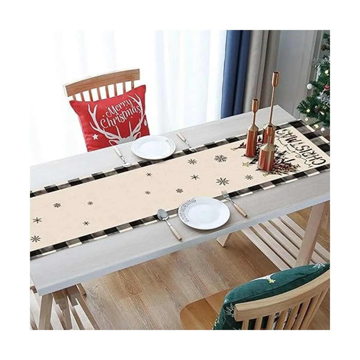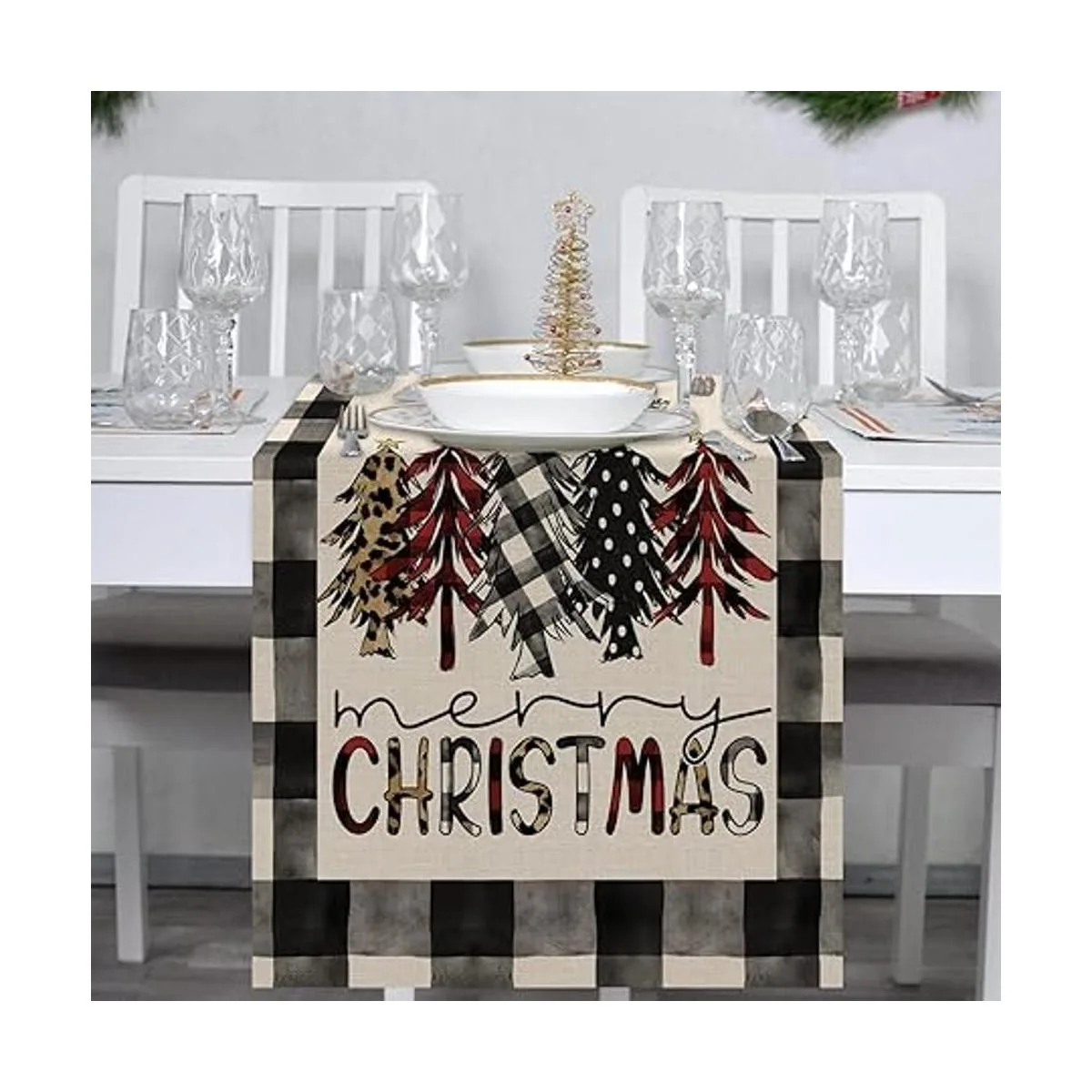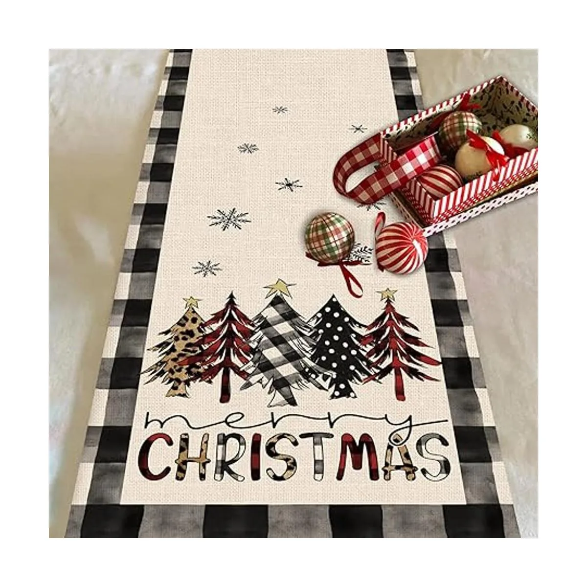 Seliem Camino de mesa de árboles de Navidad a cuadros, feliz Navidad, acuarela, copo de nieve, decoración de cocina, decoración de temporada de invierno, vacaciones, granja, arpillera, comedor, suministros de fiesta, 13 x 90 pulgadas