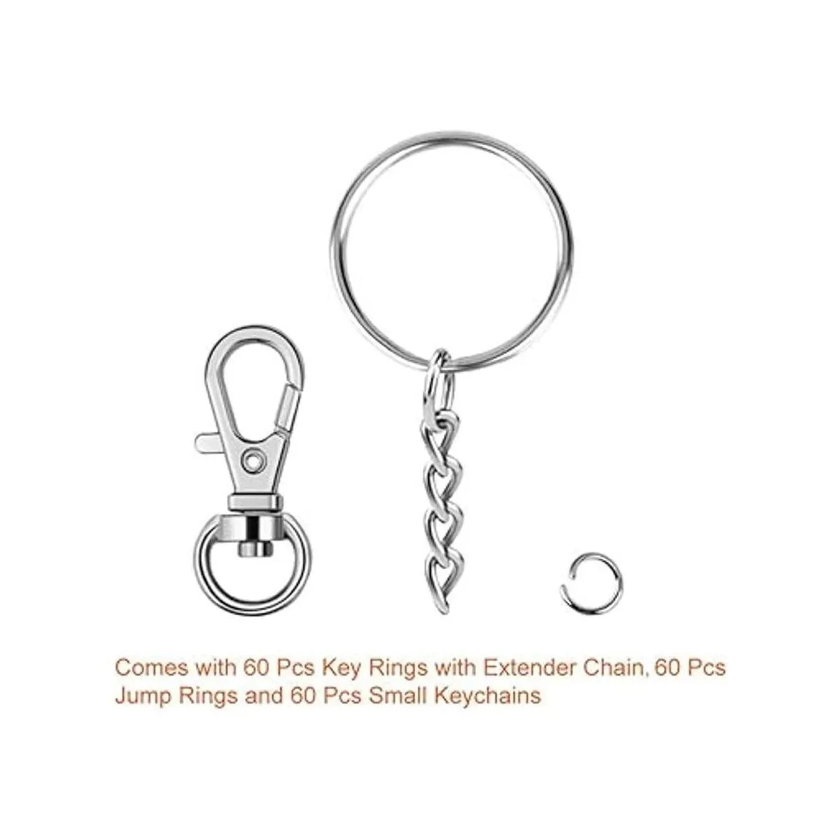 Cantidad: el paquete viene con 60 llaveros, 60 llaveros con cadena y 60 anillos de salto. El kit de llaveros a granel incluye todo lo que necesitas para accesorios de bolso y suministros de fabricación de llaveros