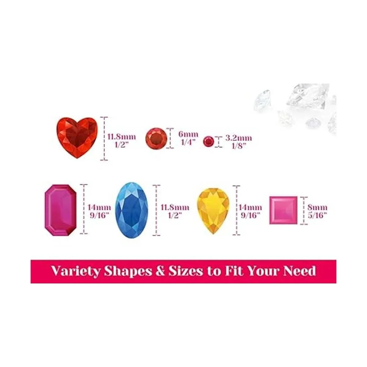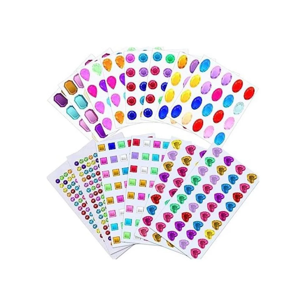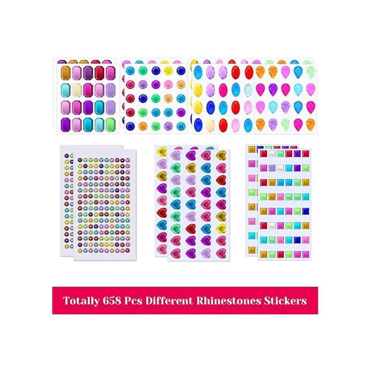 Selizo Craft Gems Calcomanías autoadhesivas de diamantes de imitación, calcomanías de joyas, joyas para manualidades, calcomanías de diamantes de cristal brillantes para manualidades, formas variadas, tamaños y colores 658 unidades, 14 hojas