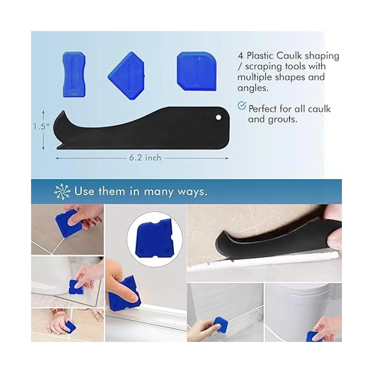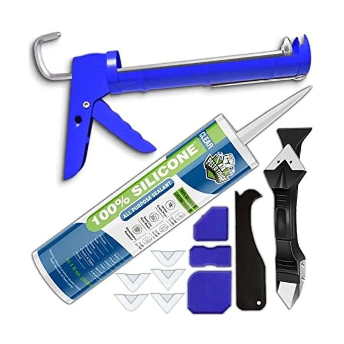 Sellador de silicona transparente de calafateo kit de herramientas de calafateo, calafateo multiusos 100 silicona tubo de 10.1 onzas, con sin goteo, raspadorherramienta de alisado 3 en 1 y 4 herramientas de acabado de mano.