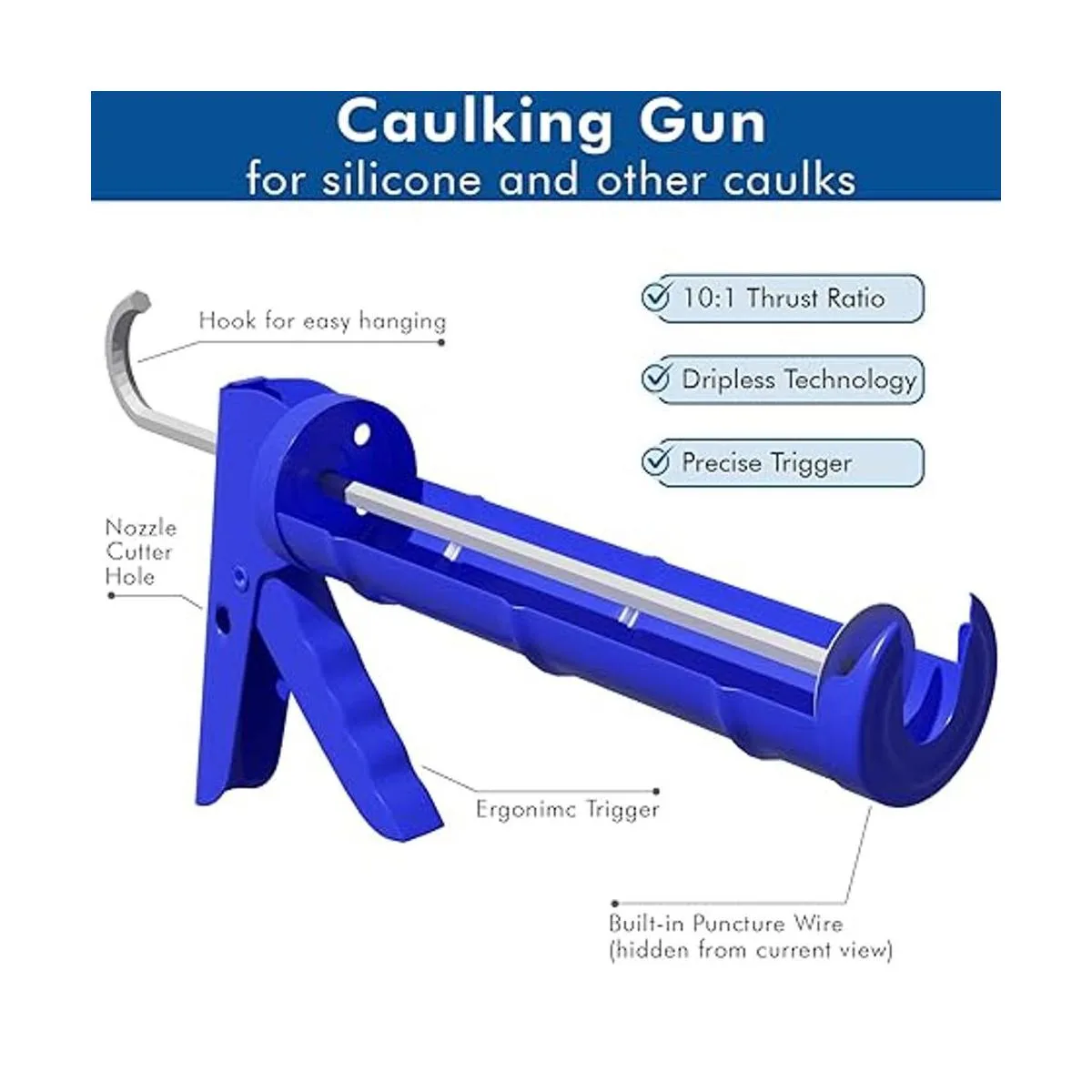 El juego incluye tubo de sellador de silicona RTV impermeable y todas las herramientas que necesitas para aplicarlo. El sellador es multiusos y se puede utilizar en el baño, cocina, puerta y ventana, revestimiento. Se puede utilizar en interiores y exteriores, y en casi todos los materiales comunes no utilizar en metales sensibles a la corrosión como cobre, zinc, latón y acero galvanizado