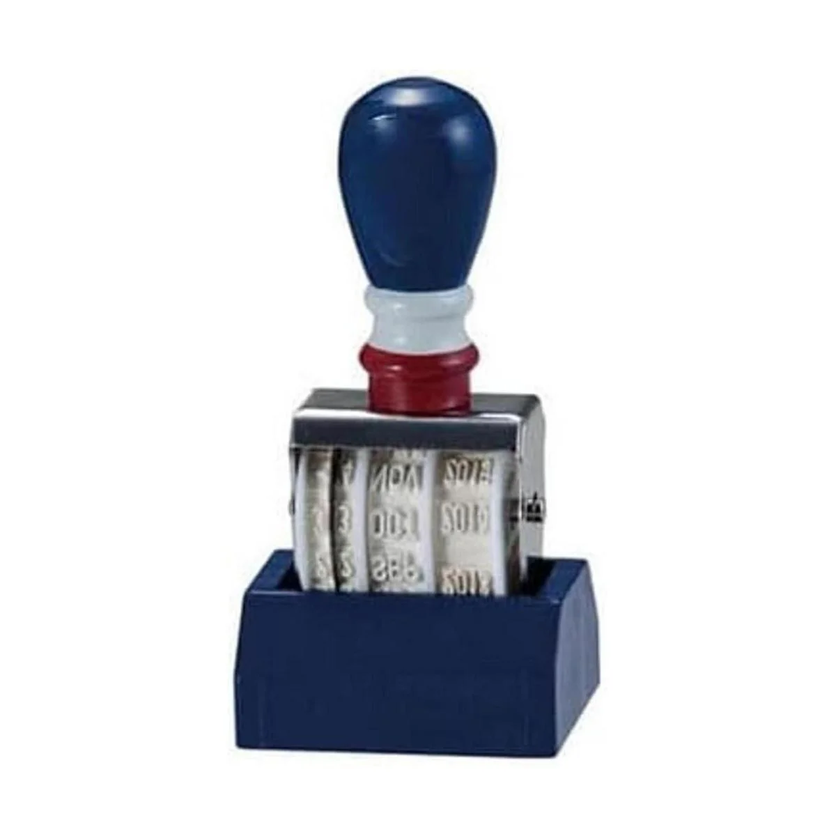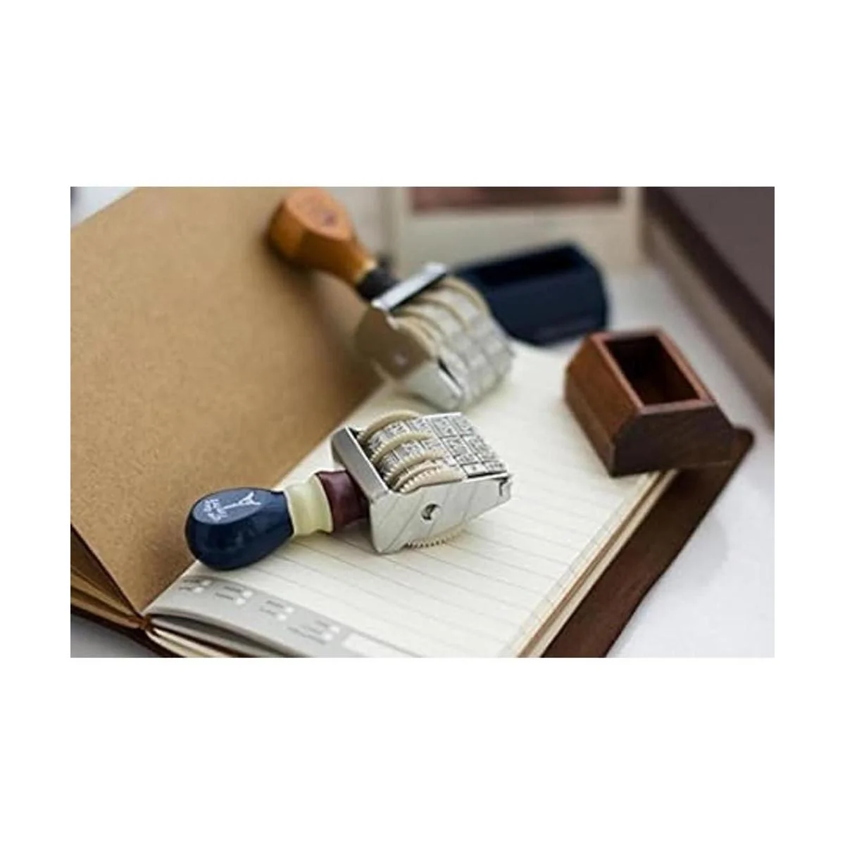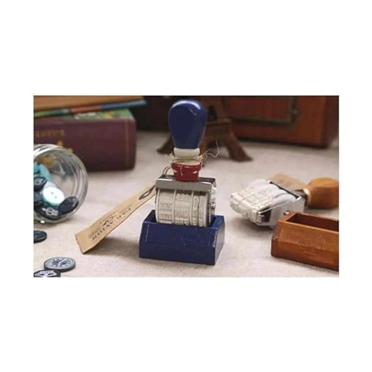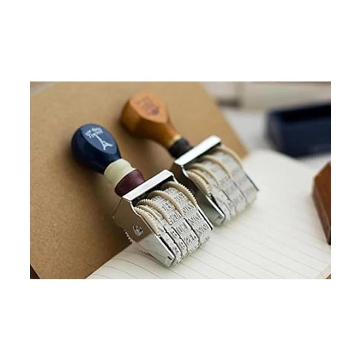 Sello de fecha de rodillo de mango de madera retro, sello de goma para hacer tarjetas de manualidades de bricolaje azul