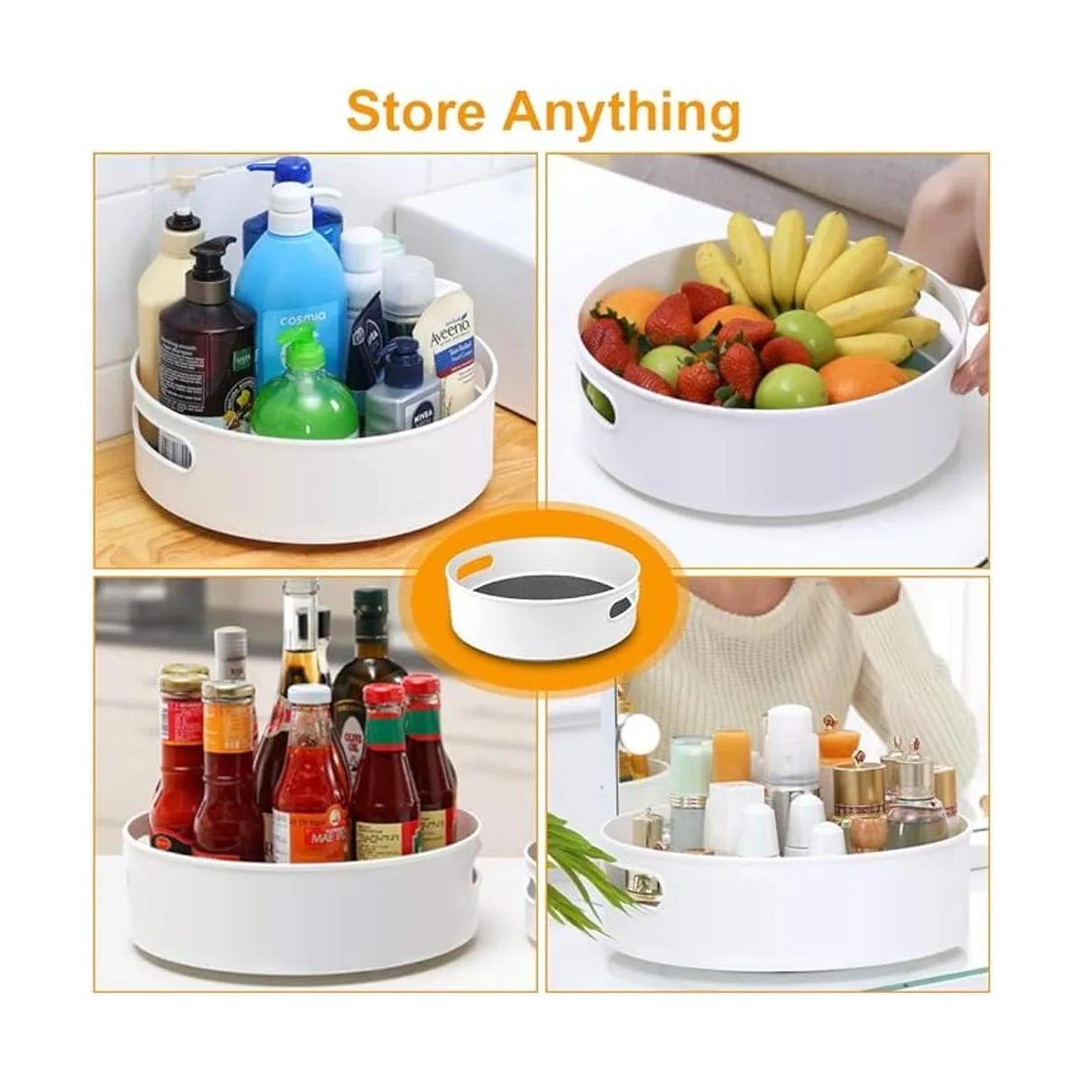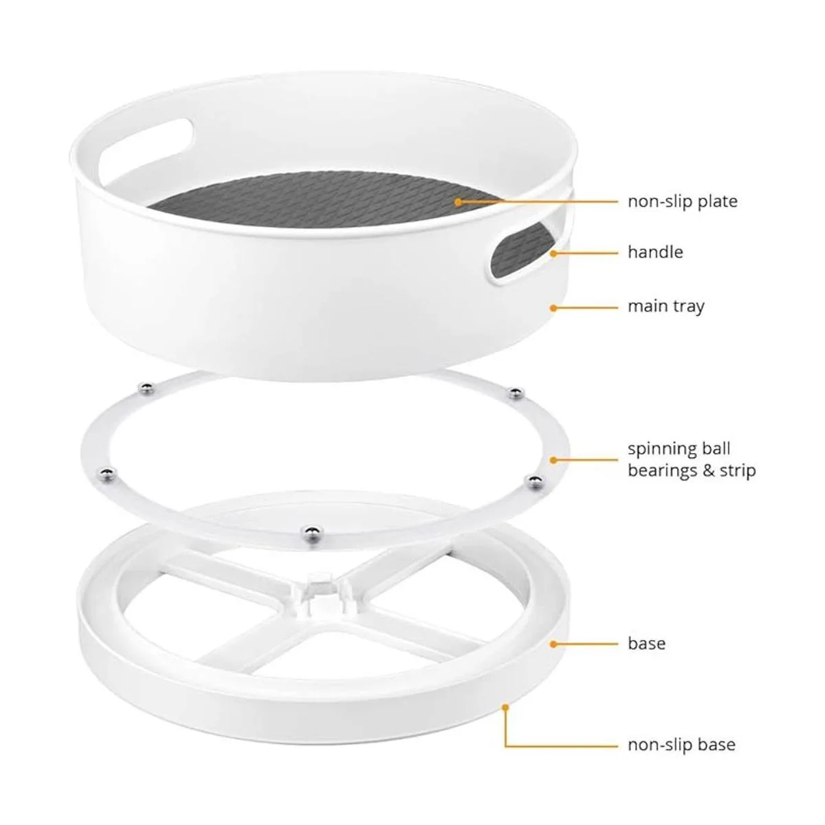 Almacenamiento giratorio: el tocadiscos perezoso susan para armario tiene un rodamiento de bolas de acero inoxidable que garantiza un movimiento giratorio suave. Debido a la rotación de 360, puedes ponerlo en el refrigerador o armario, y simplemente girarlo suavemente, puedes obtener el artículo más interior, sin necesidad de rebuscar la caja. Y cuenta con asas para un fácil transporte, que pueden soportar una gran carga de más de 176.37 oz.