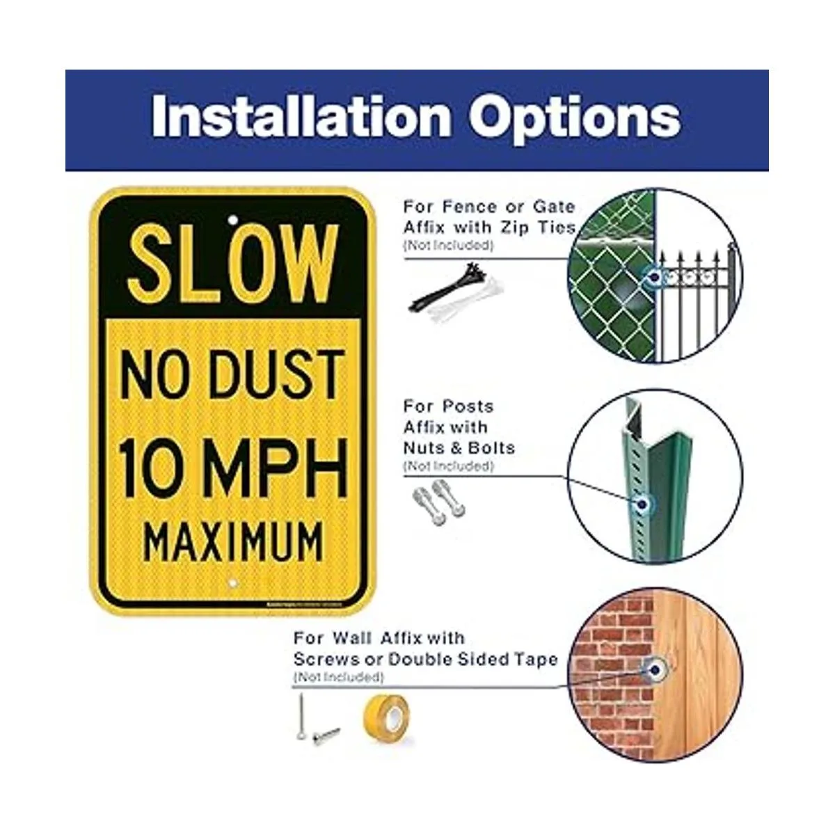 Fácil de ver: nuestro letrero máximo de 10 MPH, diseño brillante y visible en negro y amarillo, ayuda a recordar a los conductores que lo vean desde una distancia segura y ralentizar inmediatamente y reducir el polvo.