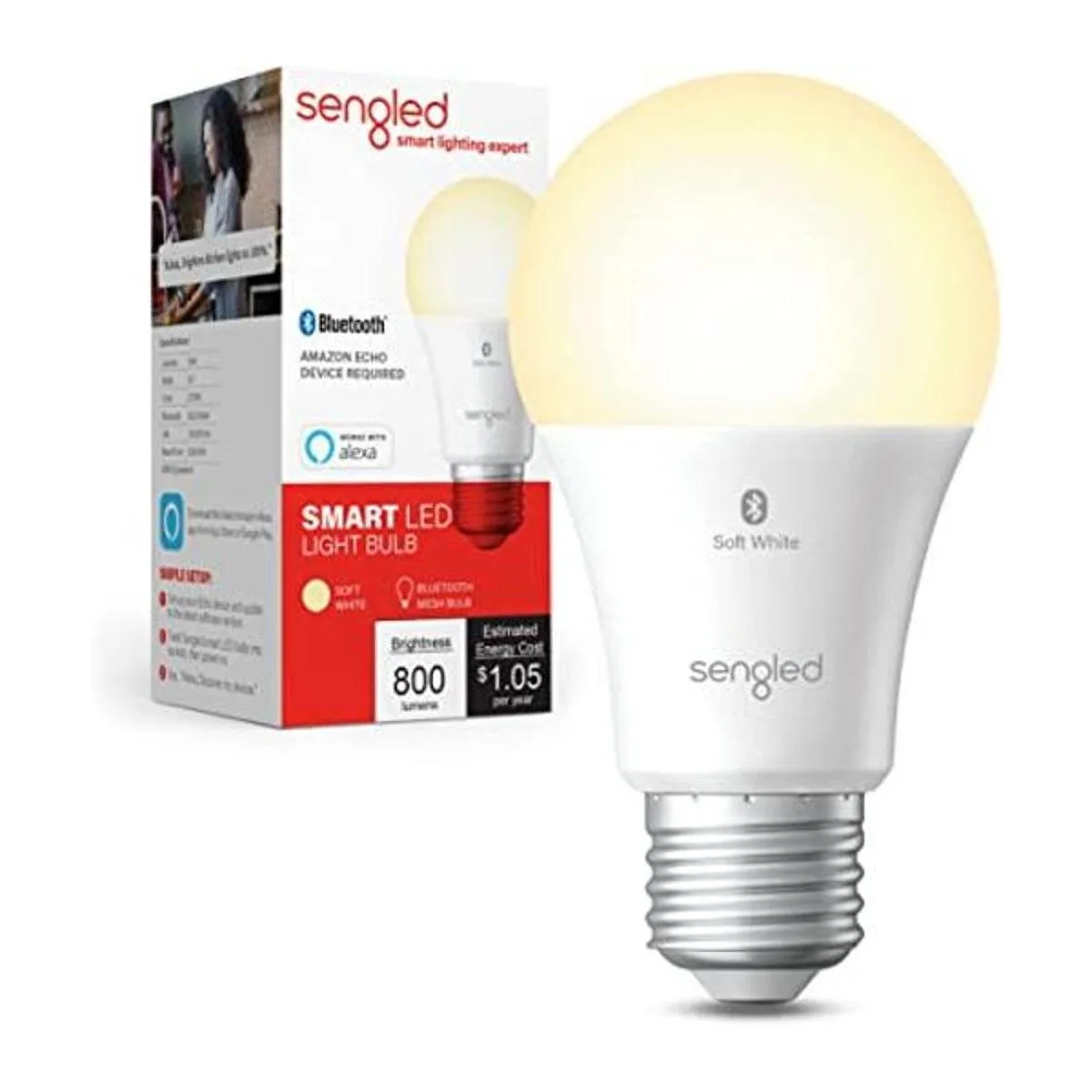 Sengled Bombilla inteligente, bombilla Alexa de malla Bluetooth, bombillas inteligentes que funcionan solo con Alexa, bombilla LED regulable A19 E26, equivalente a 60 W, blanco suave 800 lúmenes, certificado para dispositivos humanos, paquete de 1