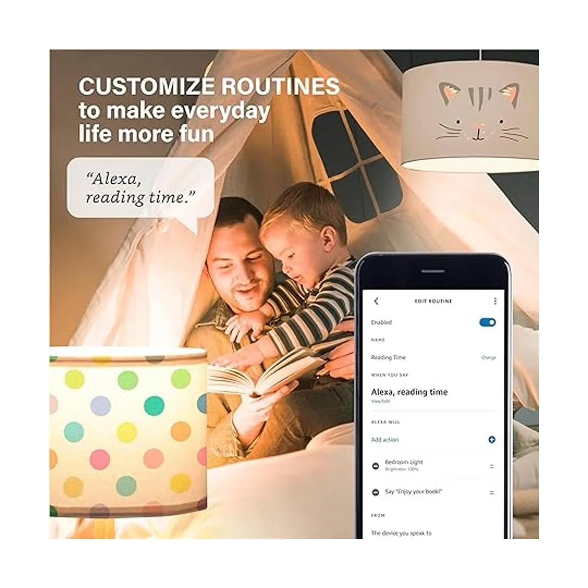Control de voz con Alexa: utiliza el control de voz manos libres para encender, apagar o ajustar el brillo de la bombilla Alexa. También puedes utilizar la voz a través de dispositivos domésticos inteligentes para utilizar funciones avanzadas como rutina de despertar o modo de distancia.