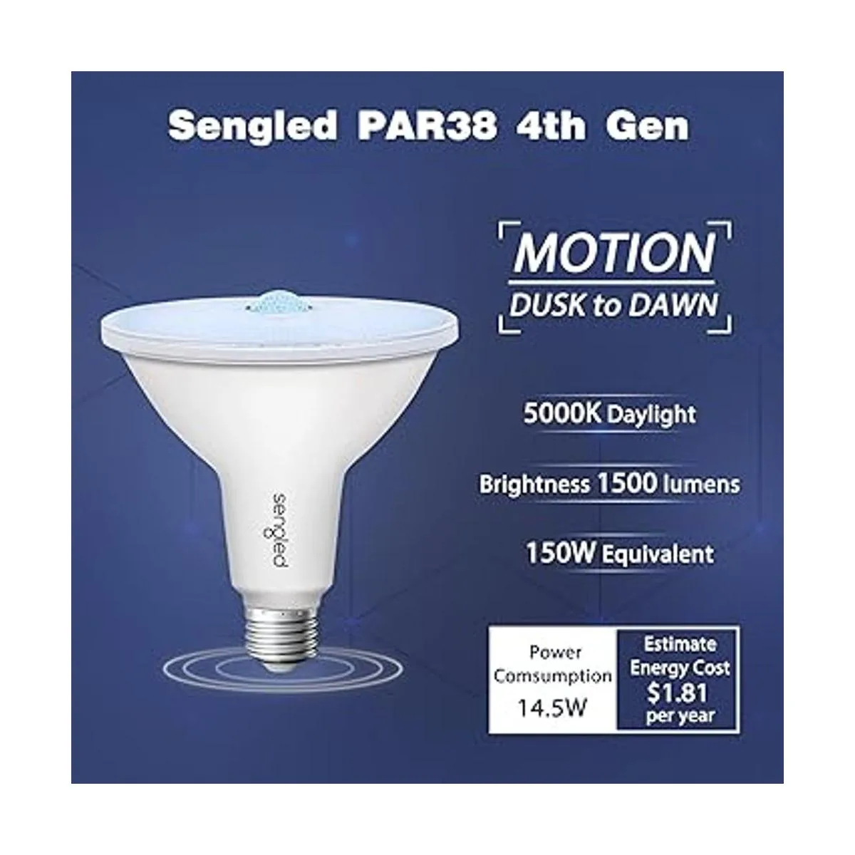 Sensor de movimiento de alta calidad: equipado con un sensor de movimiento superior, las bombillas Sengled PAR38 con detector de movimiento cuentan con un ángulo de detección de 100 de alta sensibilidad y una distancia de detección de 23 pies. Incluso un gato que pasa puede activar la luz en condiciones oscuras.