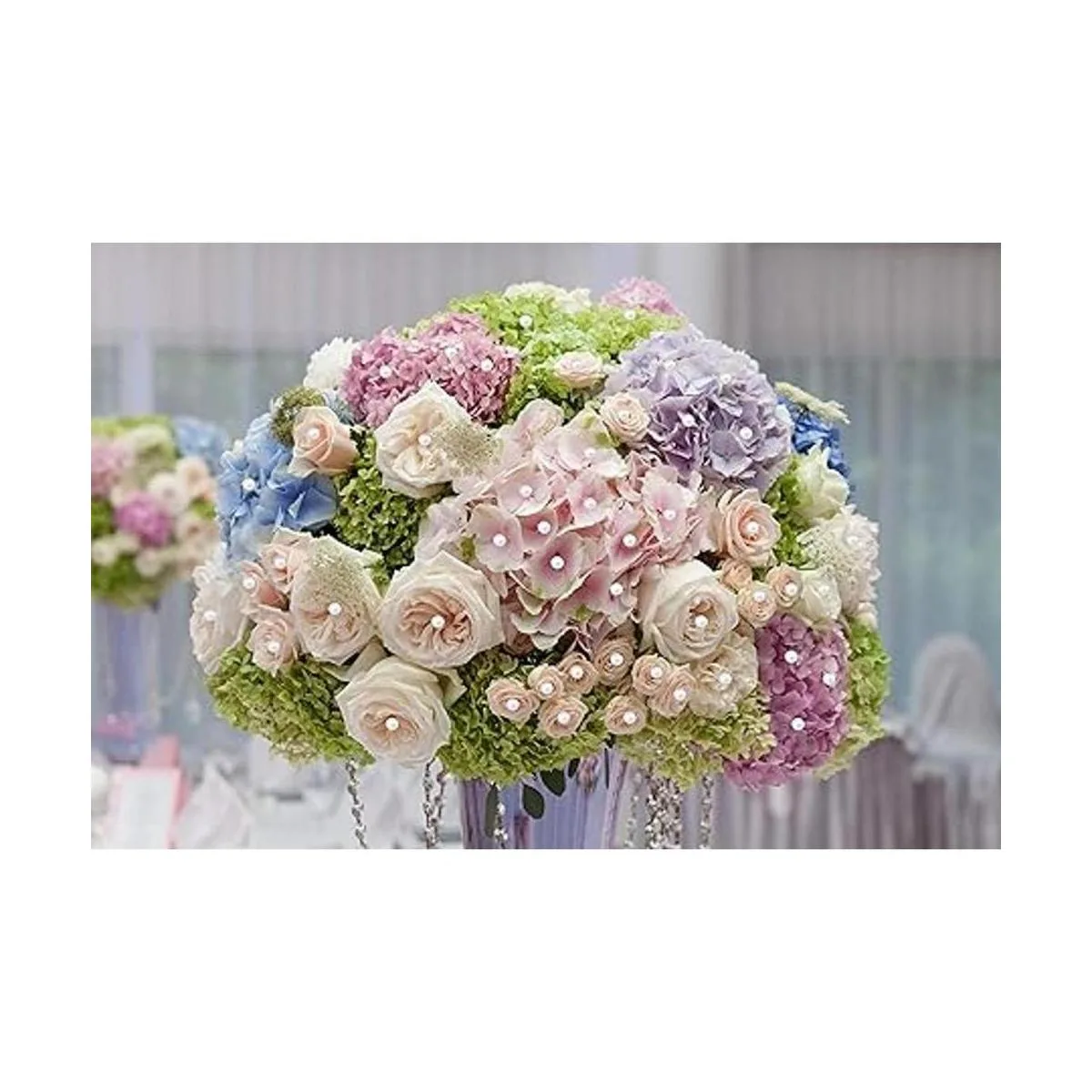Material: hecho de metal de acero de buena calidad con perla de plástico, los alfileres de flores con puntas afiladas son fáciles de deslizar en flores, espuma y tela