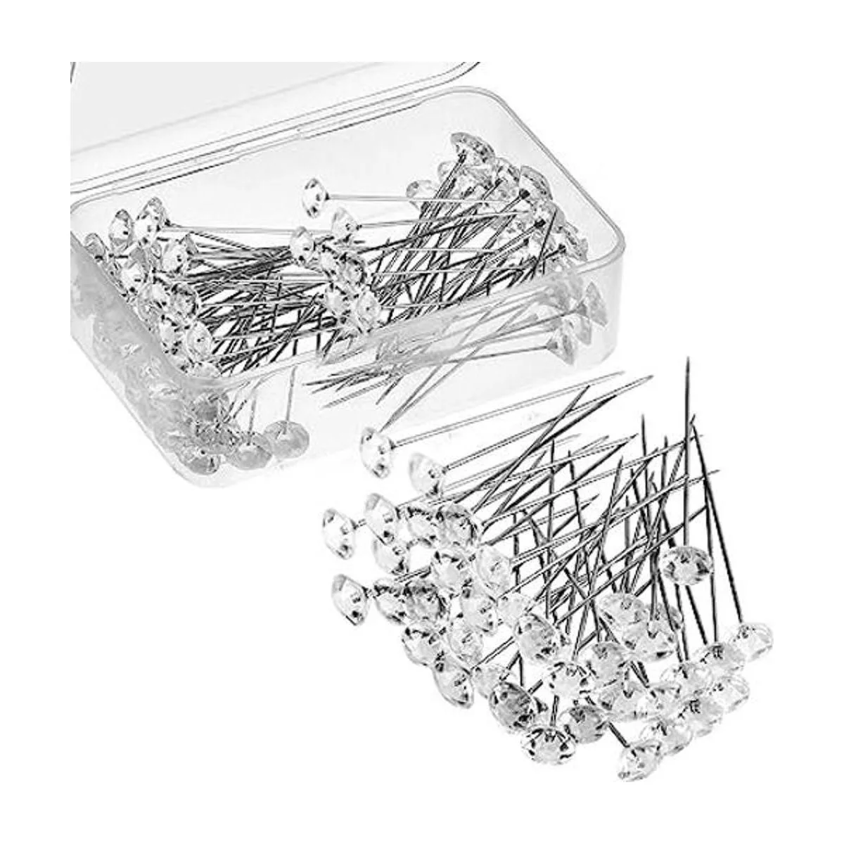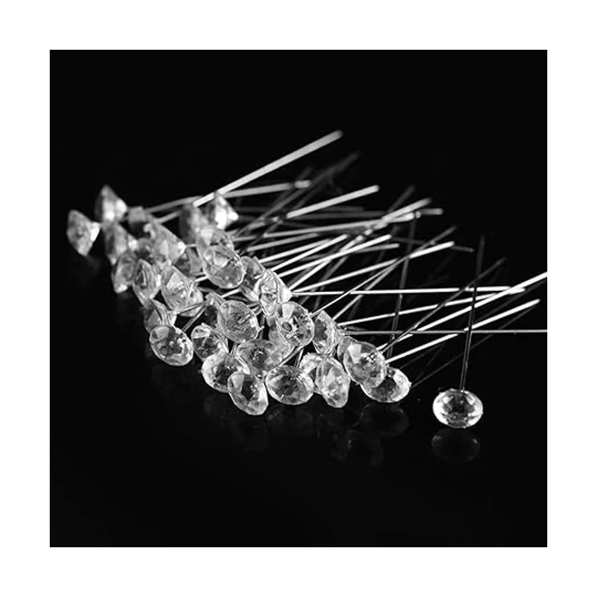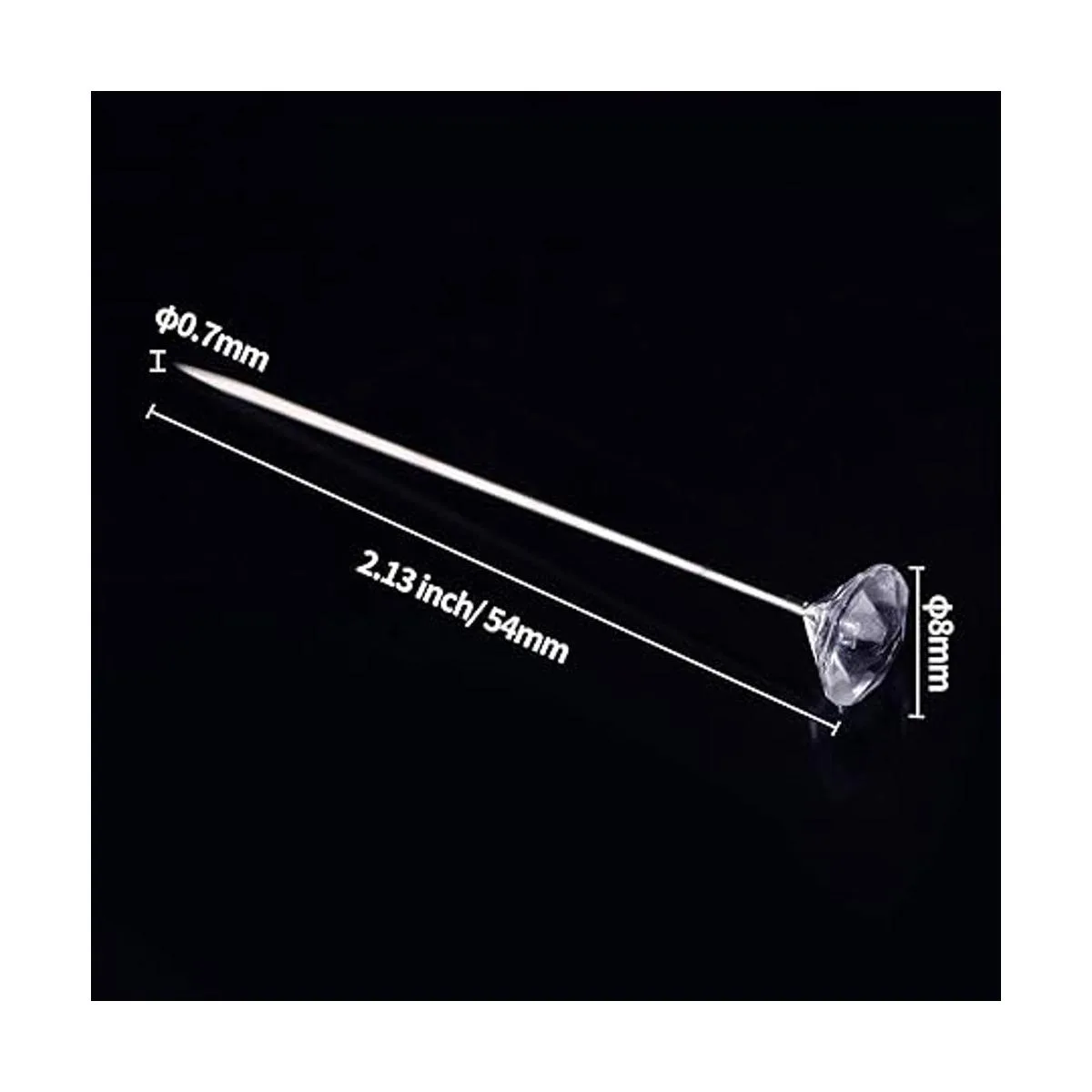 Senkary 200 pines de diamante de flores de 2.13 pulgadas, pasadores de cabeza recta de cristal transparente