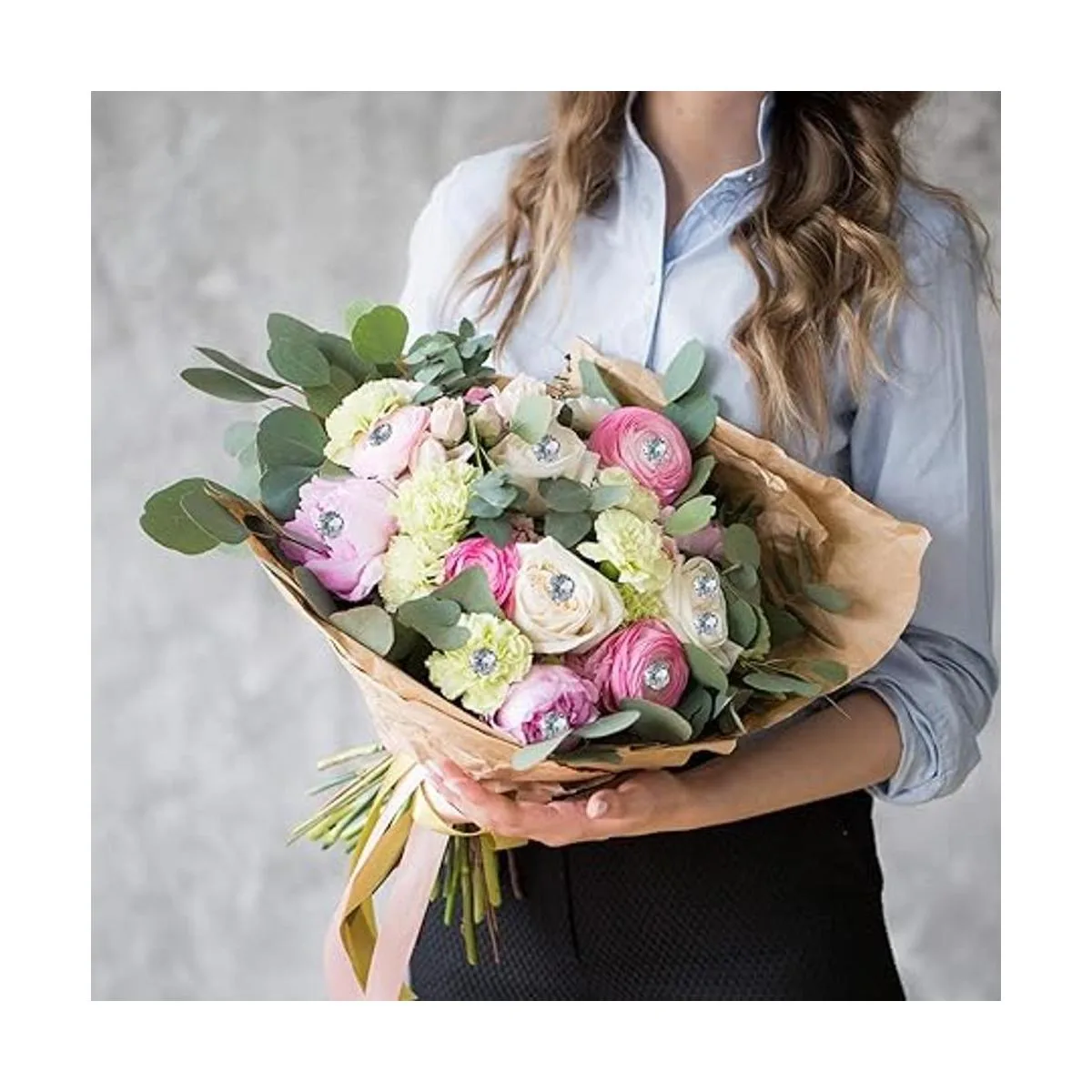Material: hecho de metal de acero de buena calidad con diamante de plástico, los pines de ramo de flores con puntas afiladas son fáciles de deslizar en flores, espuma y tela