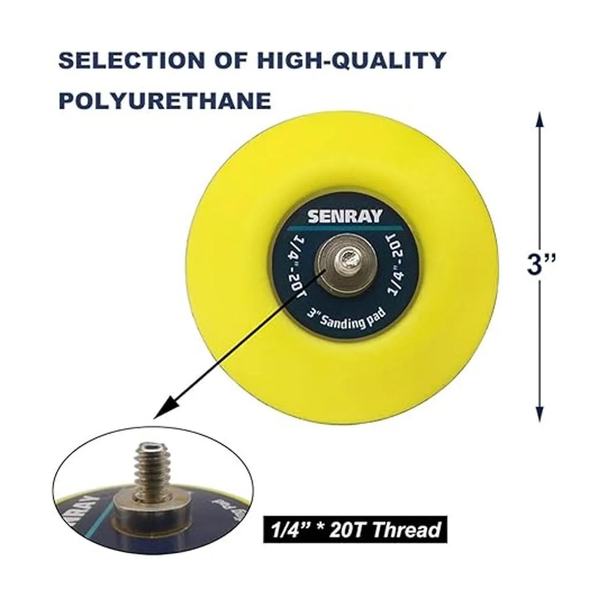 SENRAY 5 almohadillas de lija para lijadoras orbitales de doble acción de 3.0 in (1/4 «20 rosca) | 15,000 RPM