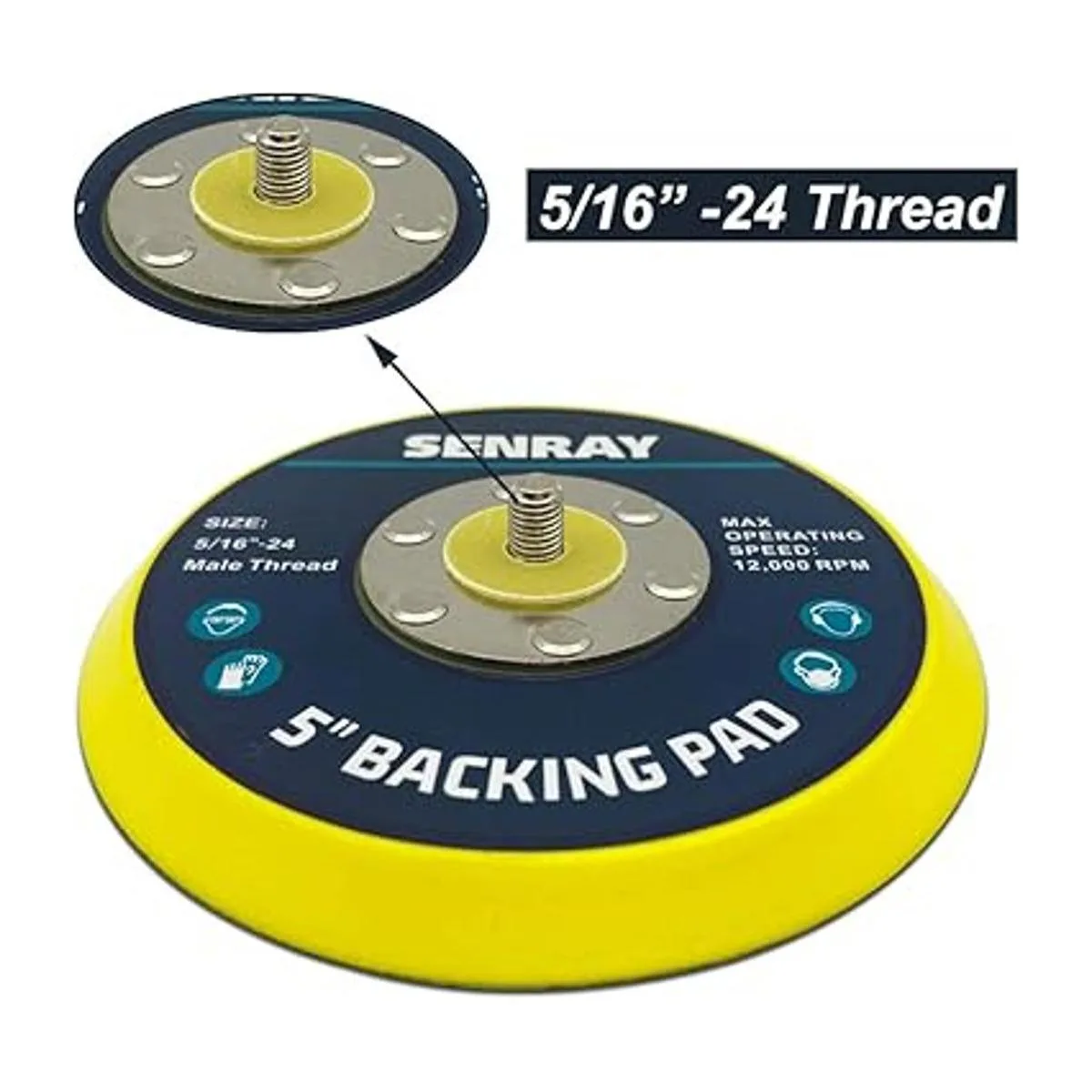 Especificaciones: almohadilla trasera de gancho y bucle Senray de 5 pulgadas, 2 unidades de placa trasera de 5/1624 hilos, velocidad oscilante de 12.000 rpm para hacer tu trabajo rápidamente, compatible con la mayoría de las principales marcas
