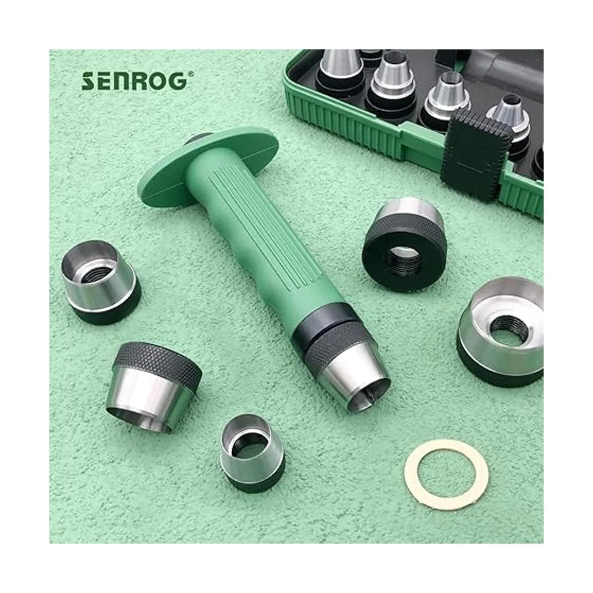 Senrog Kit de perforador de agujeros huecos y juntas 12 en 1 y juego de perforadores de cuero. Este juego de perforadores huecos puede perforar agujeros redondos regulares y también perforar hermosas arandelas y juntas. Diámetro de 0.197 in a 1.260 in.