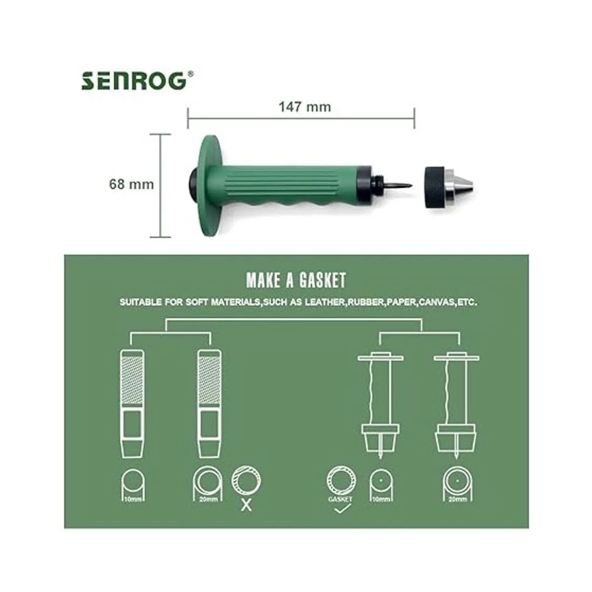 Senrog Kit de perforador de juntas 12 en 1 para cuero, papel, goma, lámina de plástico, tamaño 316 a 114 pulgadas, juego de perforadores de cuero intercambiable, cortador de juntas con asa.